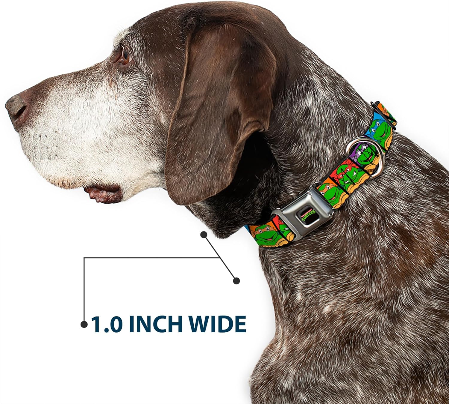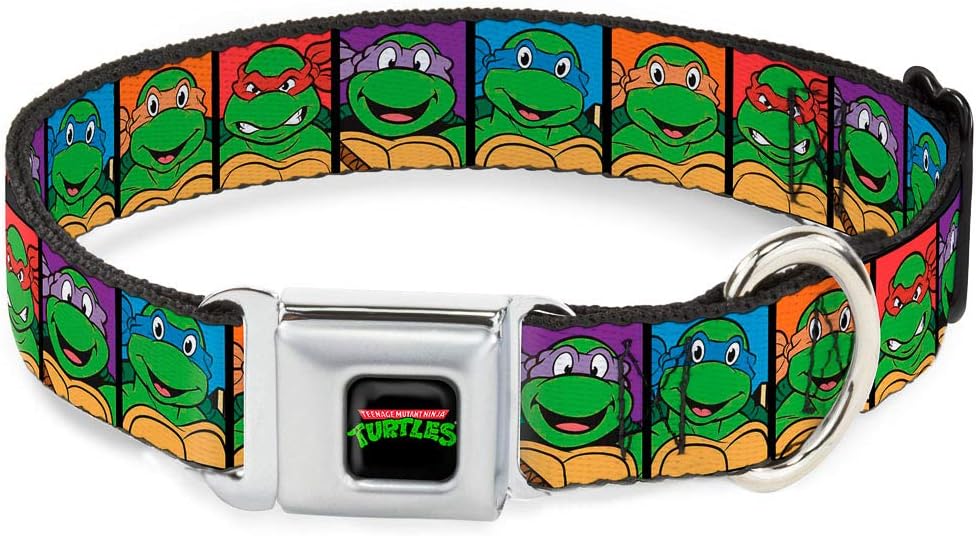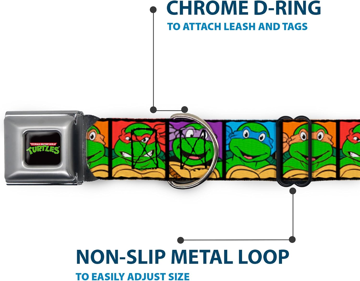Buckle-Down Seatbelt Buckle Dog Collar – Classic TMNT Face Blocks Black/Multi Color – 1.5″ Wide – Fits 16-23″ Neck – Medium