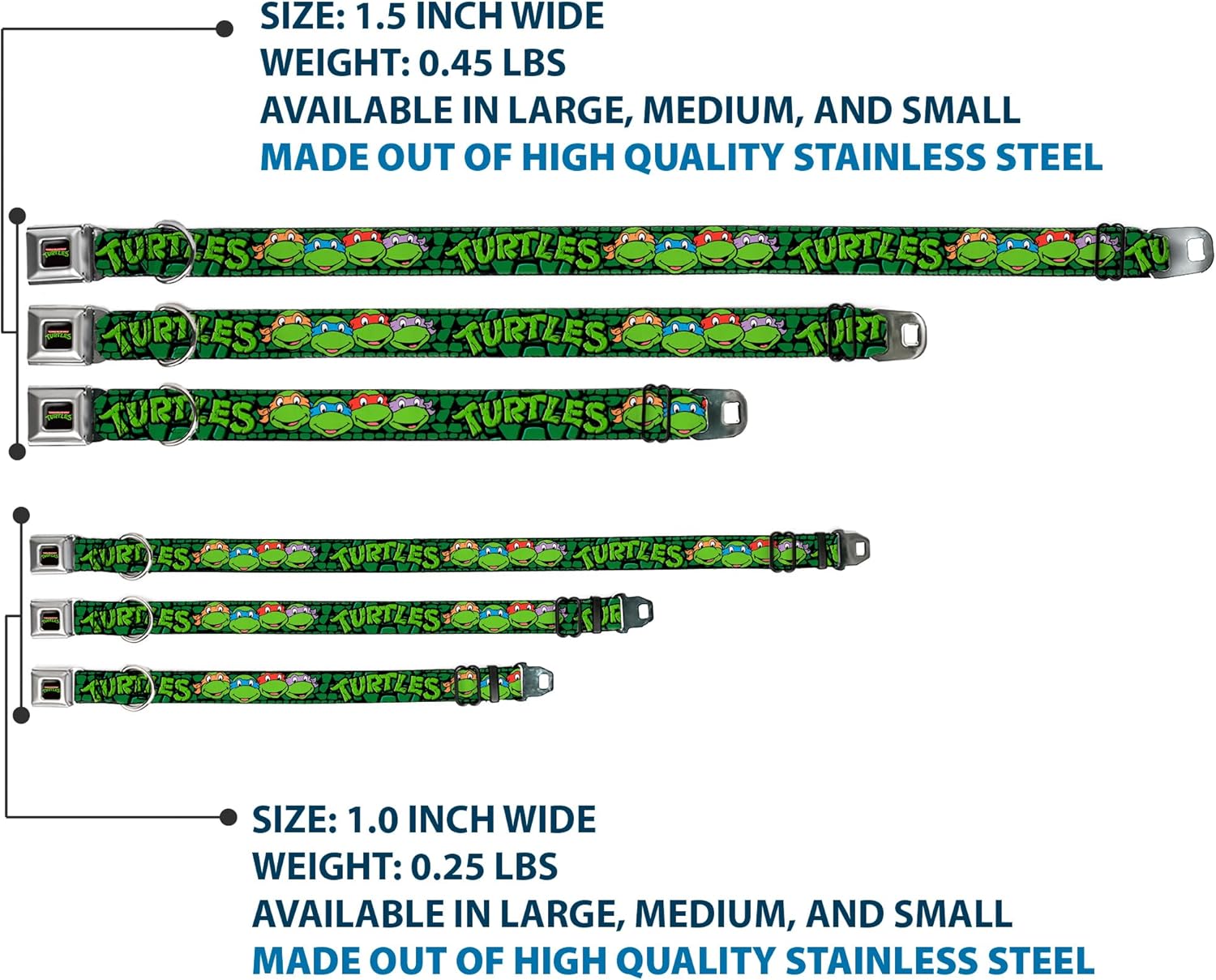 TMNT Turtle Shell Dog Collar – Adjustable, 1″ Wide, 15-26″ Neck