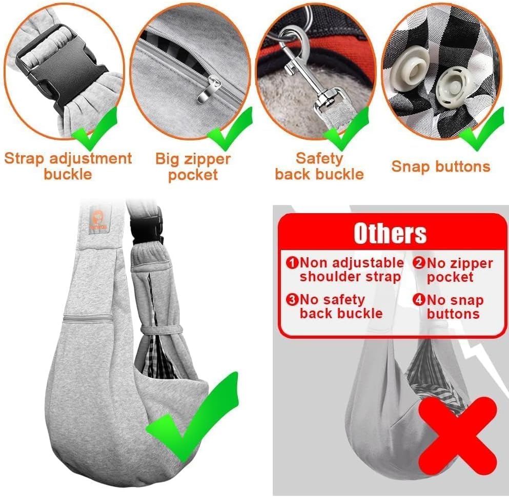 Large-Capacity Zippered Pockets: Stay organized with Tomkas’s front zippered pocket that can store all of your essentials, such as your phone, keys, cards, wallet, and dog leash. Our reliable carrier is designed with your convenience in mind. Unlike other dog slings without zippered pockets, our pocket keeps your belongings secure throughout use.