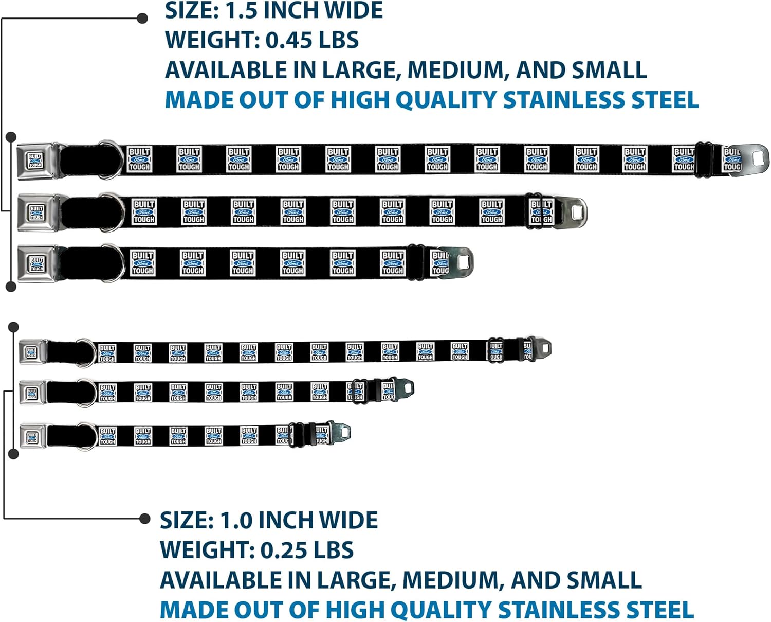 Buckle-Down Seatbelt Buckle Dog Collar – BUILT FORD TOUGH Logo2 Black/White/Blue – 1″ Wide – Fits 11-17″ Neck – Medium