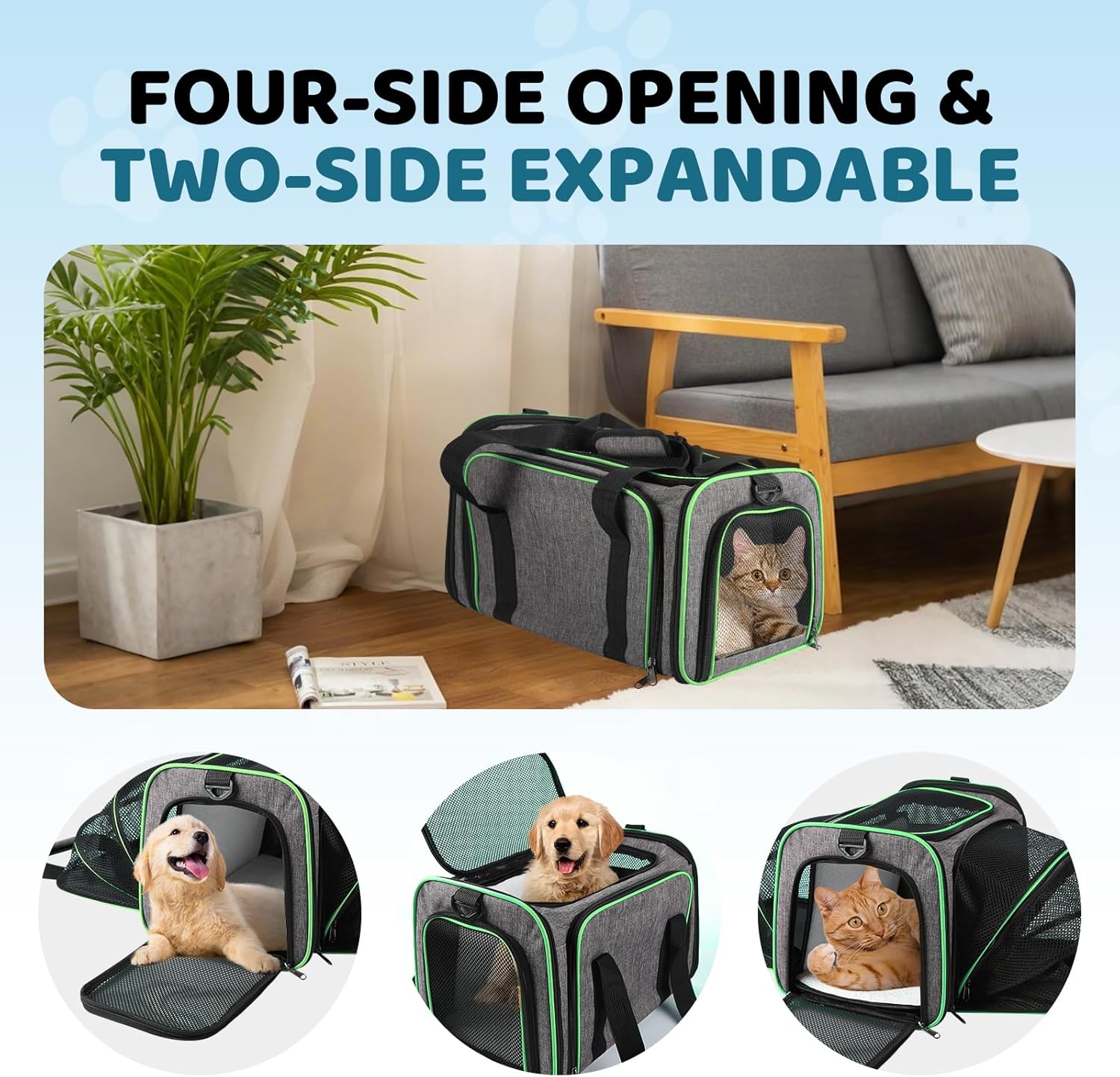 Fits for under-seat dimensions of most airlines – This two-side expandable dog carrier can be expandable to Every airline has a specific set of rules and regulations, please contact with airline before flying with your cats small dogs.