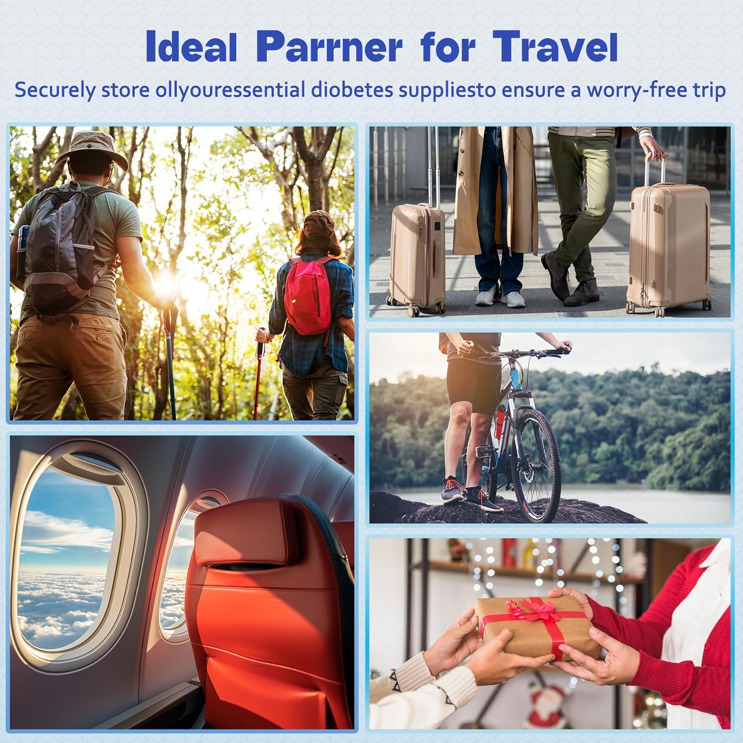 Diabetic Travel Case with Cool Packs: Insulin cooling travel case with 2 Ice Packs 180g reusable ice packs, this diabetic travel cooler maintains critical temperatures for 10-24 hours (varies by climate). ice packs freeze solid in 2-3 hours, for flights, road trips, or daily use