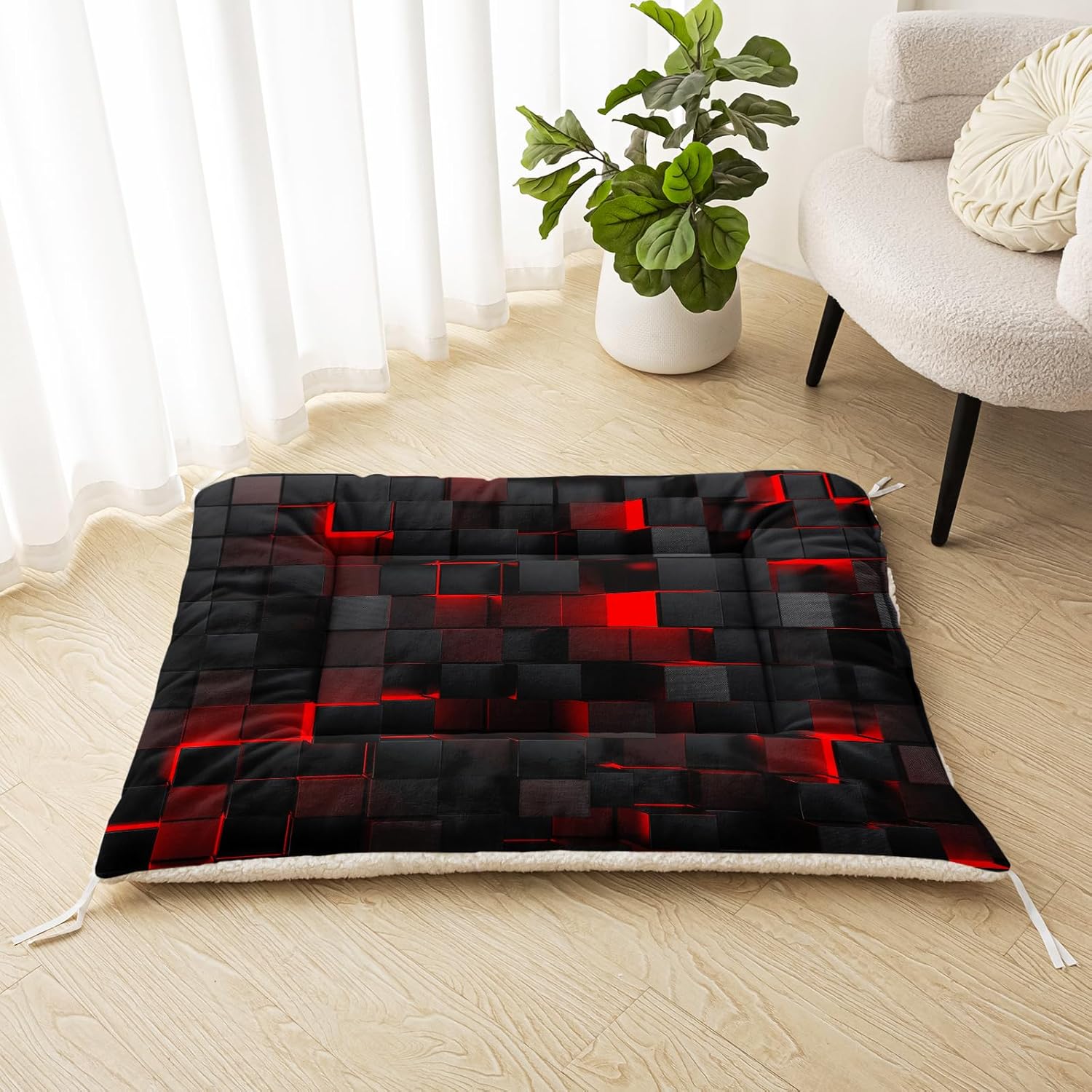 Ultra Soft Fluffy Pet Bed Mat – Washable Dog Cat Sleeping Pad (30″x26″, Red Black)