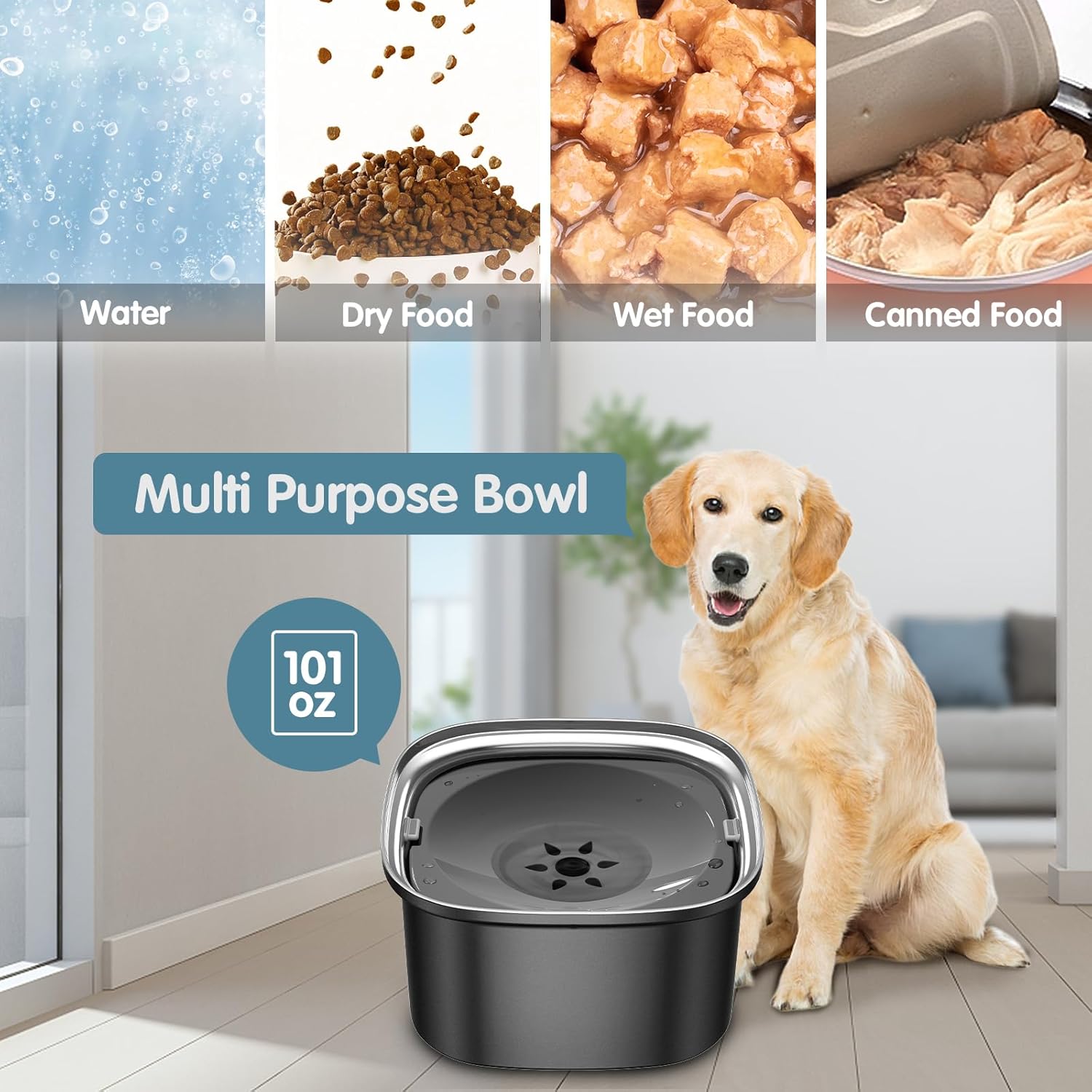 101oz Large Capacity: Our dog water bowl is a patented design. Holds a 101oz / 3L super large capacity dog water bowl is ideal for the daily drinking needs of small, medium, and large dogs and multiple pet families, no need to add the water frequently. Keep your pets drinking enough water.