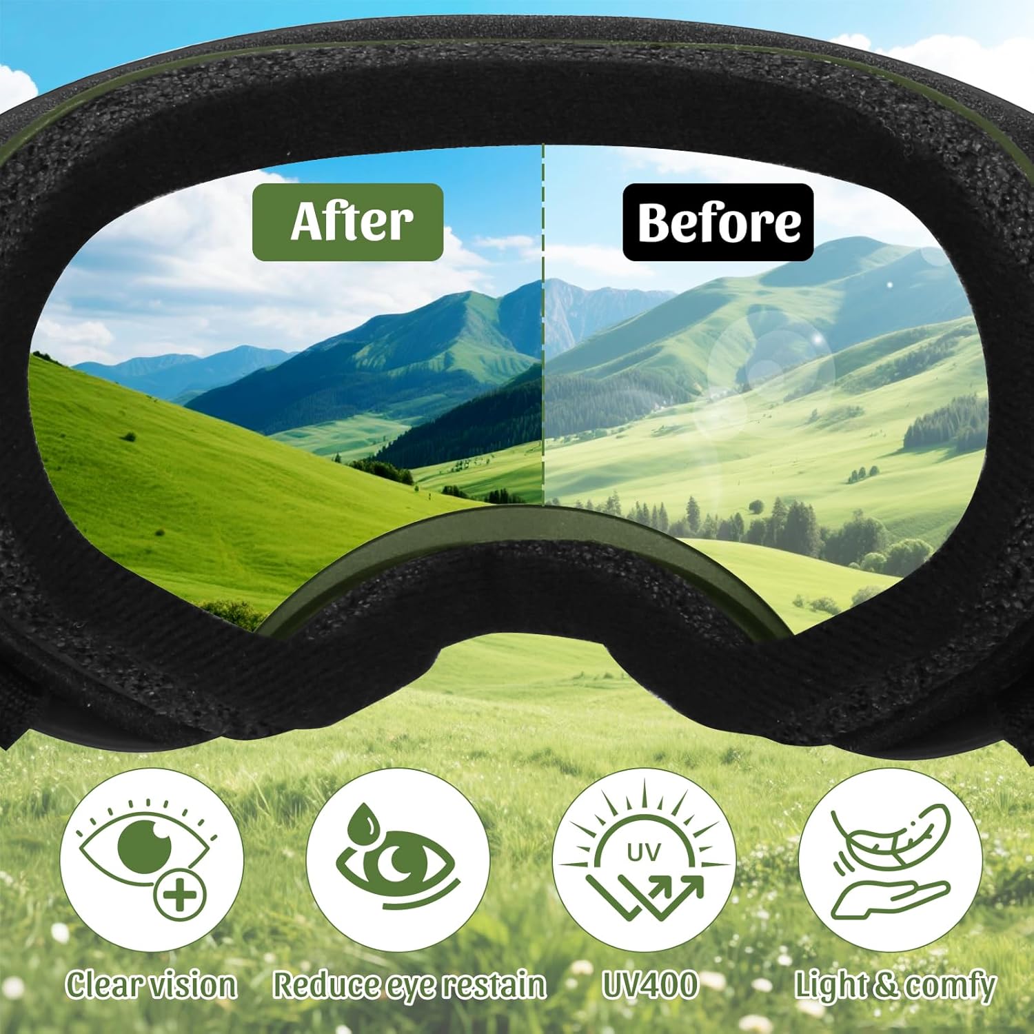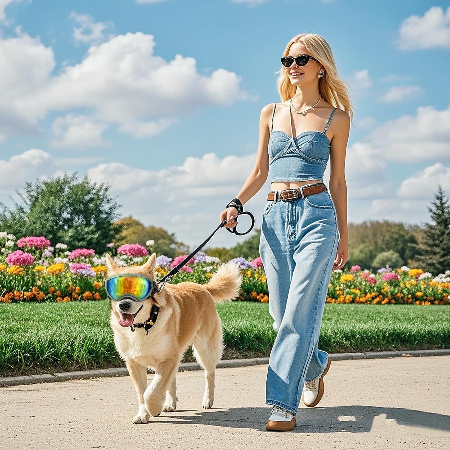 Neck strap design & PC lens: Detachable lenses and frames, Double layered adjustable straps, PC reinforced lenses, and multiple layers of sponge inside for comfortable wearing. It can prevent your dog’s glasses from falling off while running, hiking, or in windy environments.