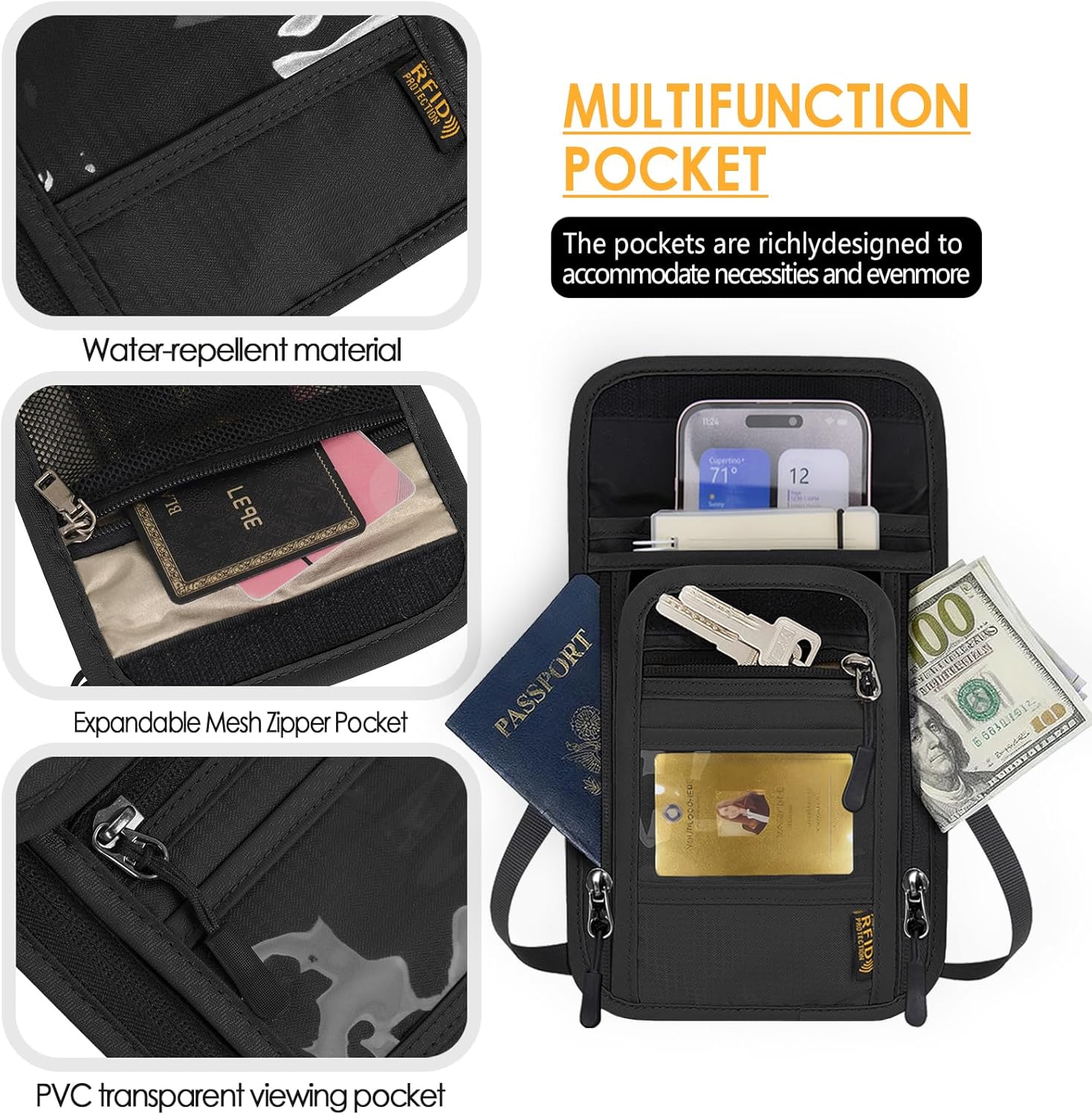 【ADJUSTABLE CROSSBODY & NECK STRAP】 Fully adjustable strap allows you to wear it as a neck pouch or crossbody travel wallet. Fits comfortably for both men and women, ensuring a customized and secure fit.
