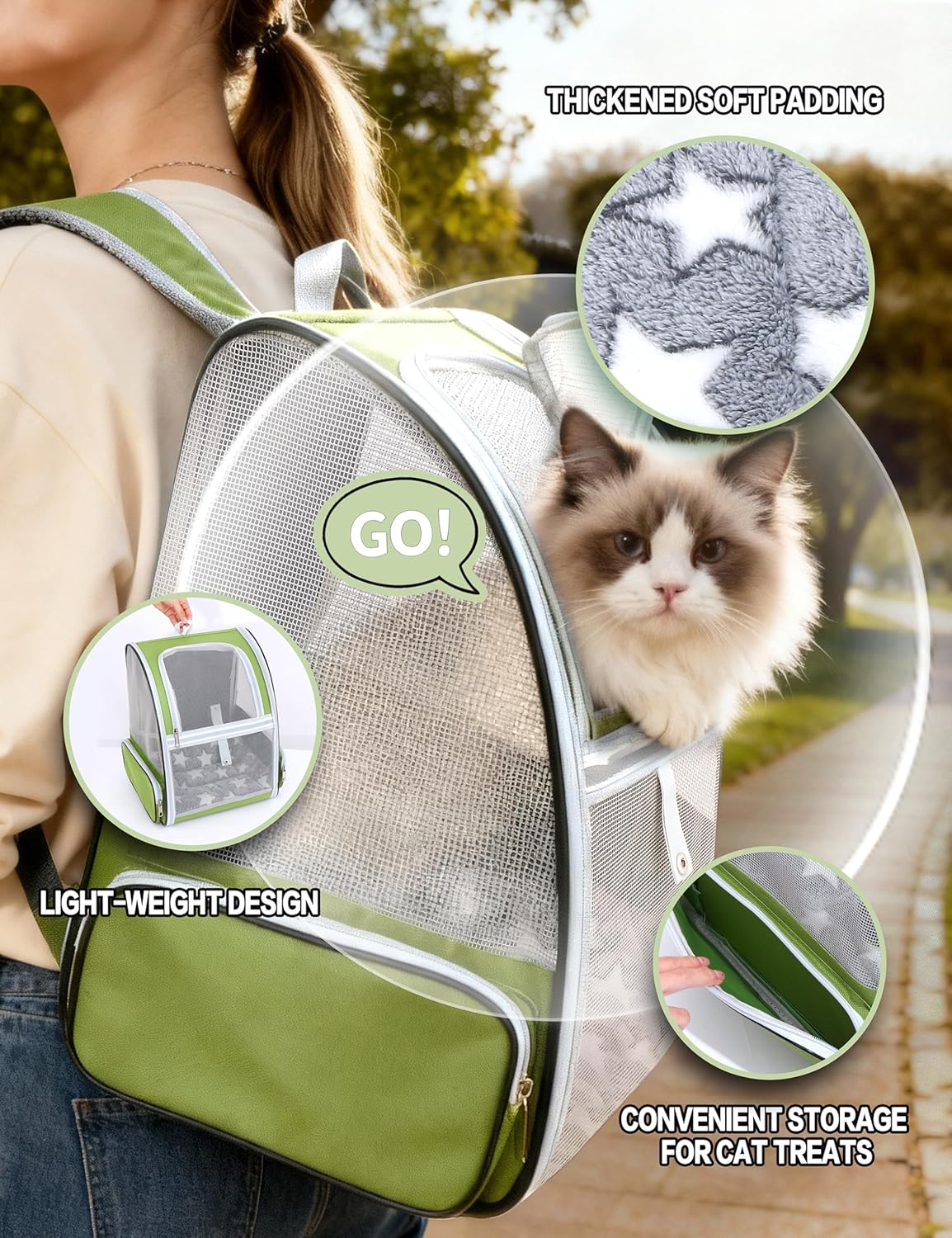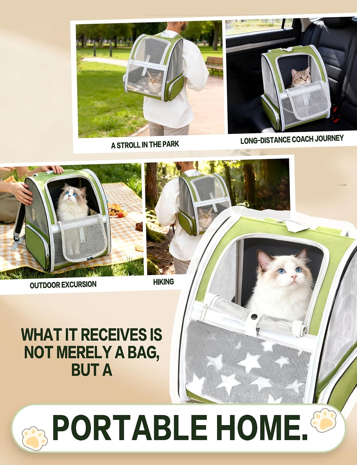 Pet Carrier for Effortless Carrying : The cat carrier backpack is designed for ease of use. It features widened, padded, and adjustable shoulder straps that reduce load and enhance comfort. The adjustable chest and waist buckles prevent strap deviation and ensure stability while carrying your pet. They also keep the shoulder straps from slipping during movement. Additionally, the cat carriers are easy to fold and take up minimal space when not in use