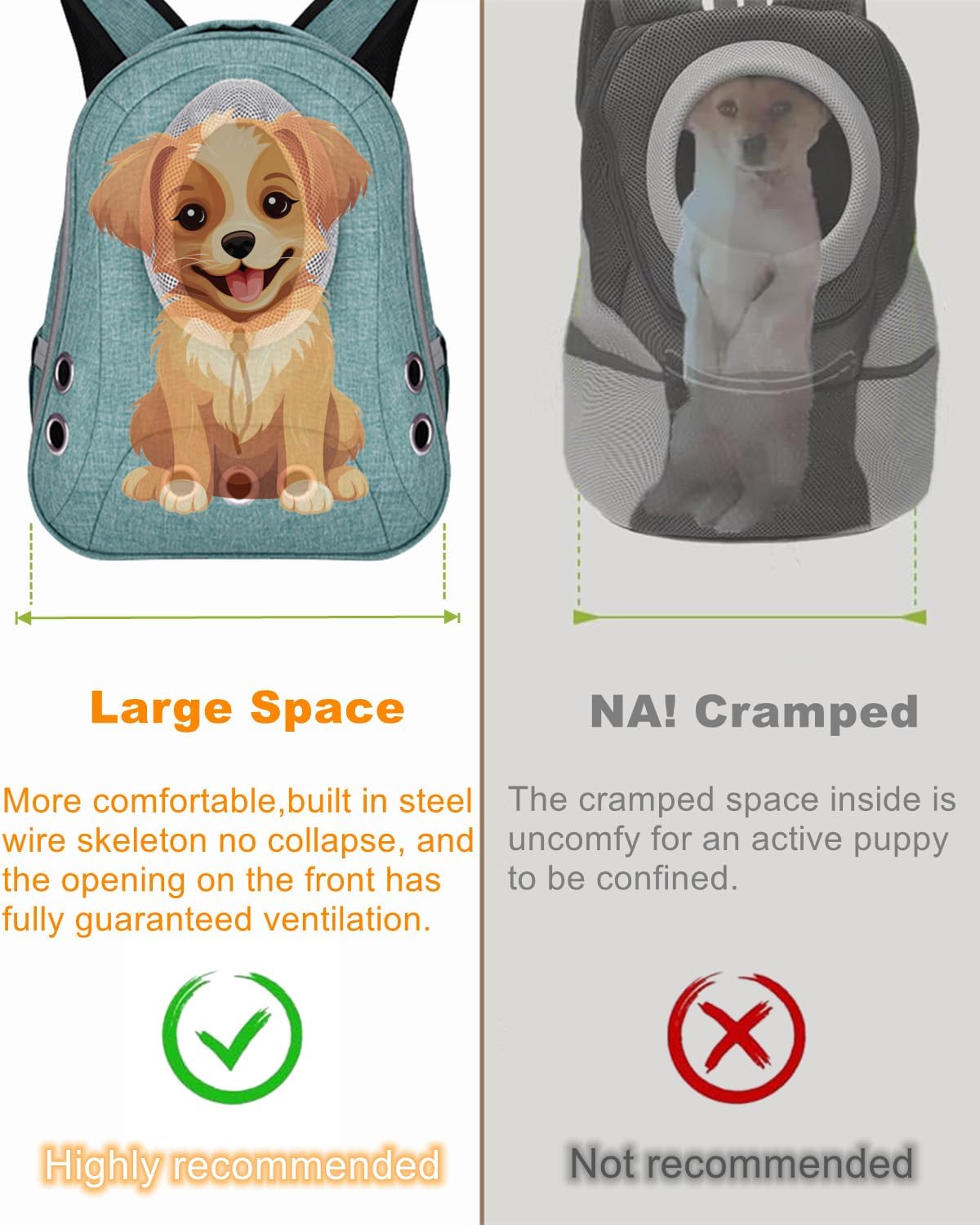 Safe and Secured Design: This dog backpack carrier is strong and wide, with durable fabric, large space and convenient storage. It can not only resist animal bites, but also prevent the dog backpack from collapsing and squeezing the pet. built-in safety leash ensuring the safety of pets and preventing them from escaping, while also allowing owners to take their pets out with peace of mind.