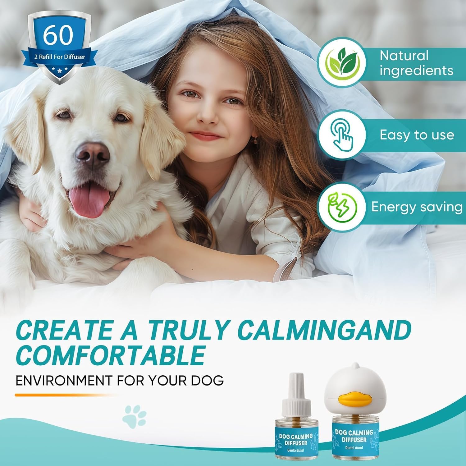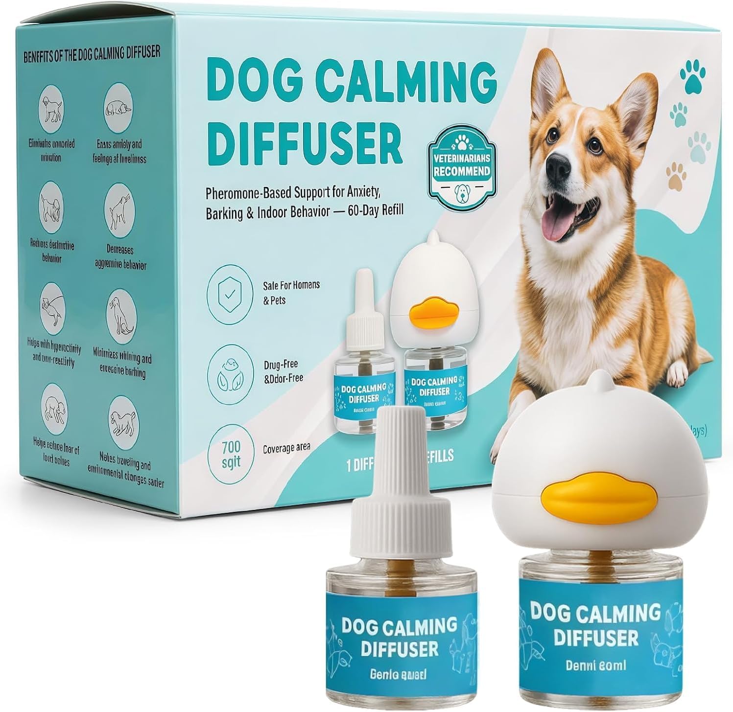 Complete 60-Day Kit: Includes 1 diffuser head + 2×48ml refills—convenient, long-lasting support for your dog’s well-being.