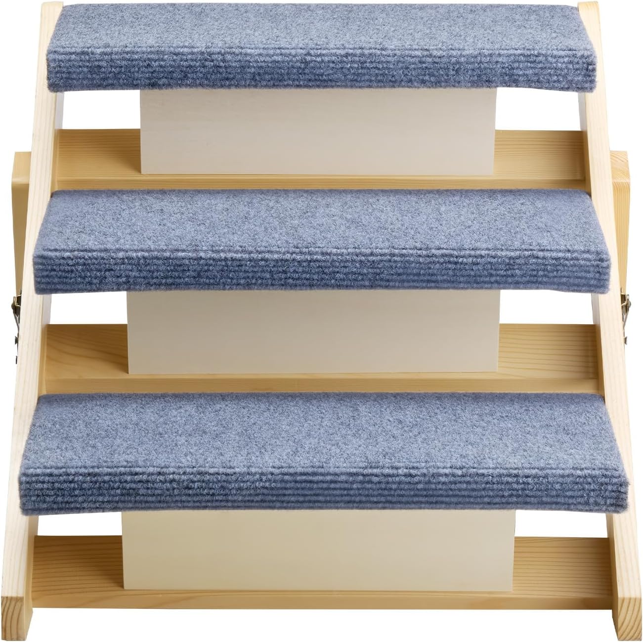 Sturdy and Secure Support: The dog stairs is built with a strong wooden frame that supports pets up to 150 lbs (68 kg). Large screws add stability, and non-slip rubber pads on the bottom avoid wobbling while helping pets climb securely