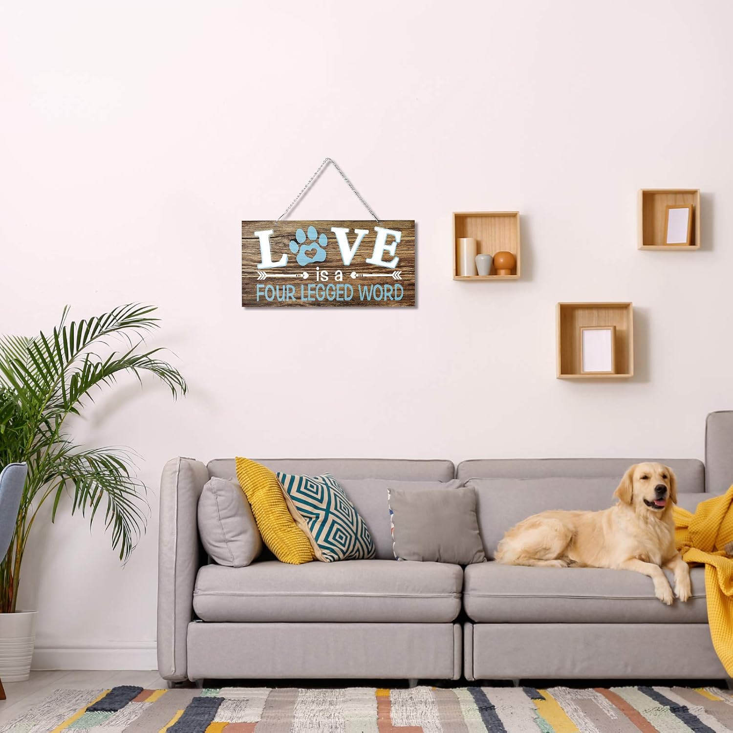 🧳 Dog Wall Decor Room Love Is a Four Legged Word Pet Paw Sign Dog Vintage Metal Hanging Decorative Signs Plaque Wall Decorative for Christmas Pet Lover Gifts Thanksgiving(10 x 5 Inch) β€” Dog Travel Gear Review & Current Price
