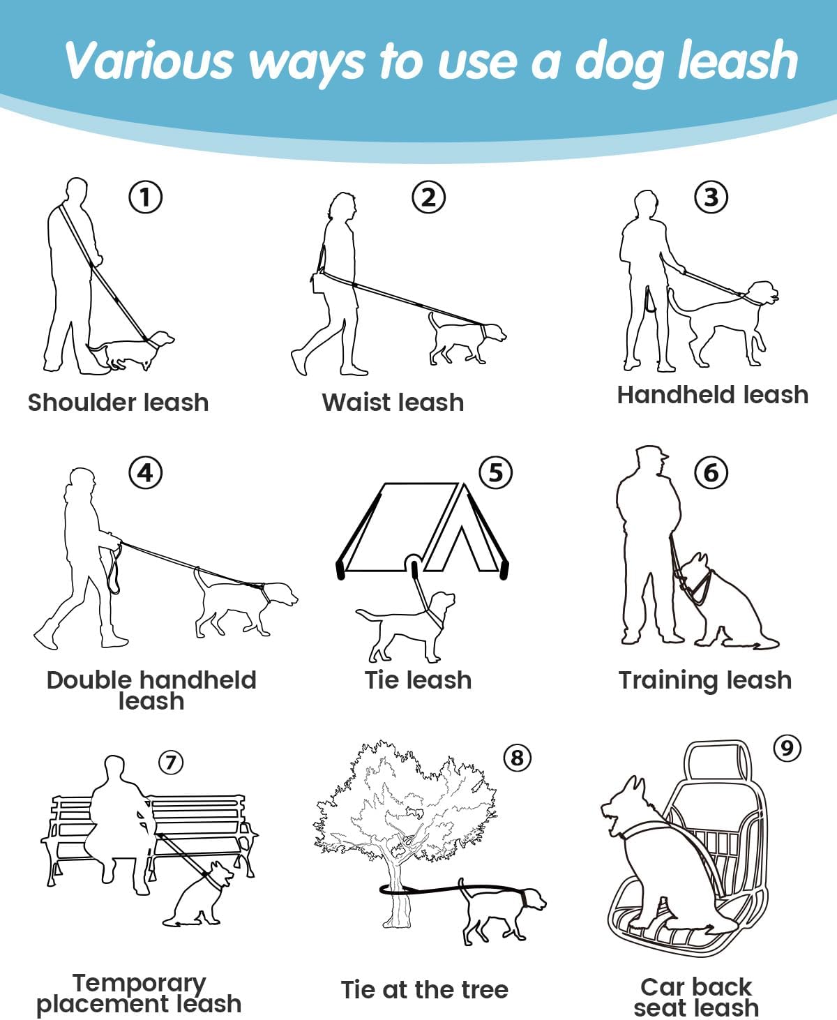 1 Car Safety Buckle 2 Crossbody Dog Leash 3 Waist Belt Dog Leash 4 Handheld Dog Leash 5 Reflective Tape