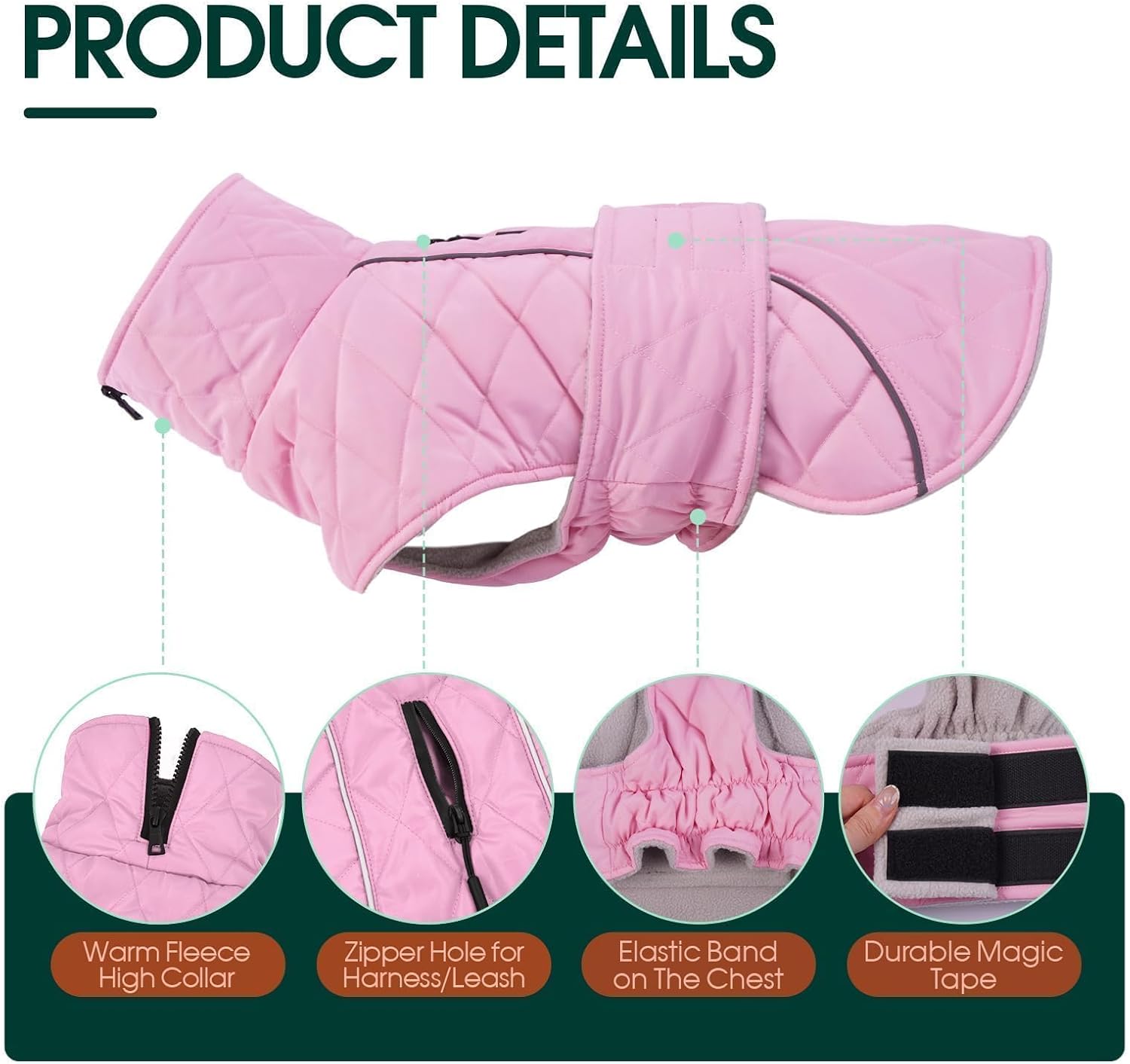 Nighttime Safety – Reflective strips keep your dog visibleQuick & Secure Fit – Adjustable magic sticker and safety buckle for easy on/off and a snug fitFits snug, easy to put on, water and wind resistant on the outside, and faux fur lined inside, this jacket should keep your doggie nice and warm.Ideal for Chihuahua, Yorkshire, Maltese, Pomeranian, Beagle, Boston Terrier, French Bulldog, Labrador, Golden Retriever, et