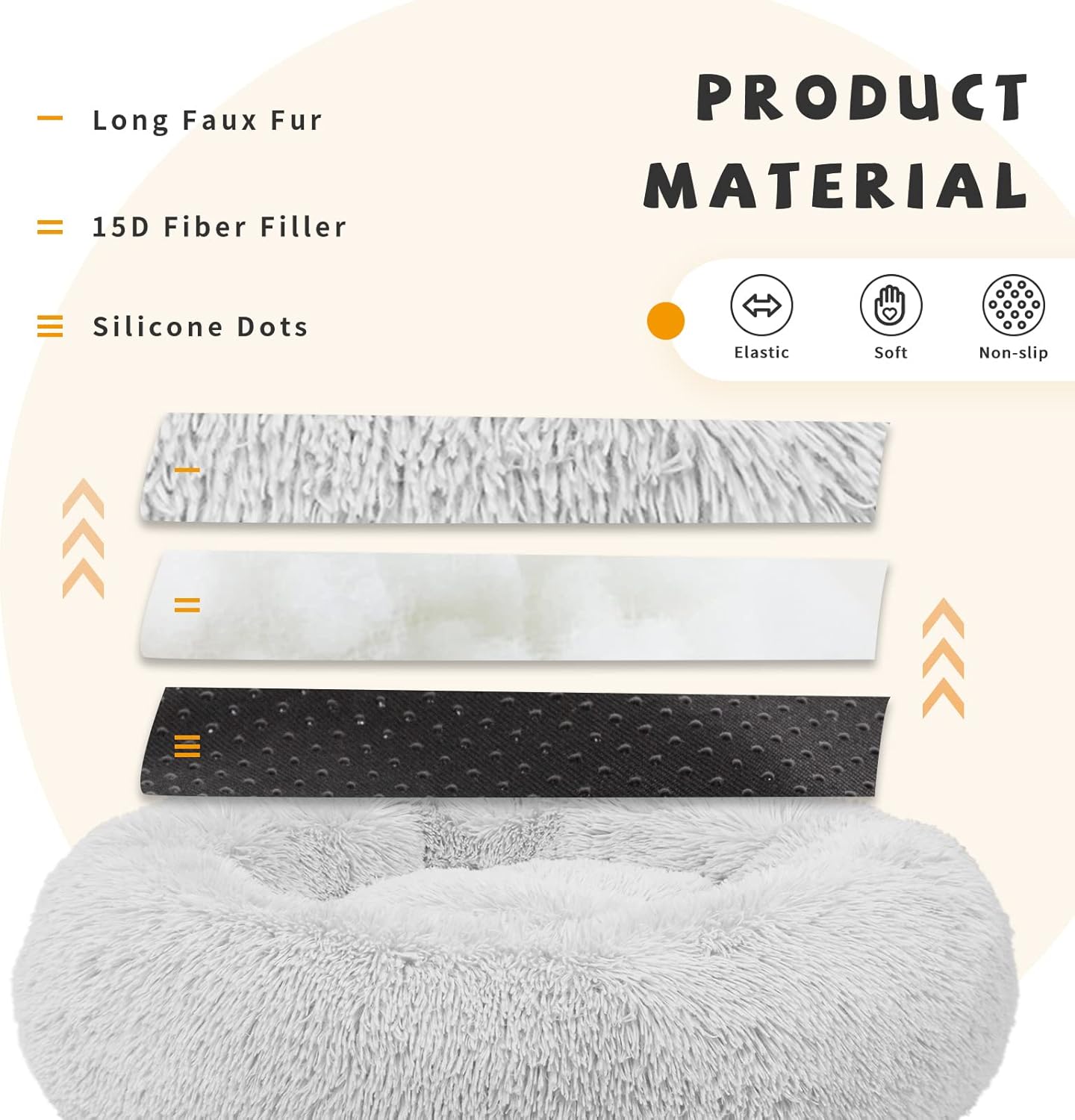 Cozy Calming Design:Soft plush fabric with a donut-shaped design creates a cozy,secure sleeping space that helps pets feel calm and relaxed.