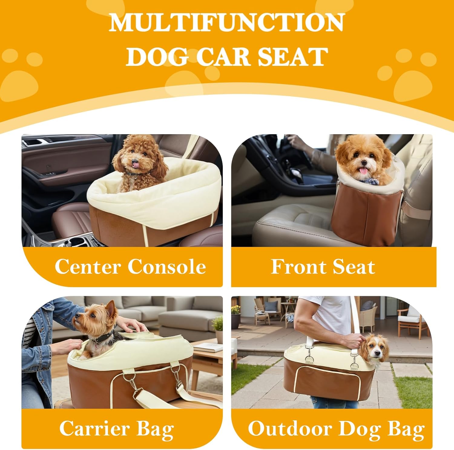 🧳 Dog Car Seat for Small Dogs Center Console Dog Car Booster Seat Washable Foldable Pet Seat with Safe Protection Hooks Adjustable Straps and Storage Pocket Pet Up to 11lbs (Brown, X-Small) — Dog Travel Gear Review & Current Price