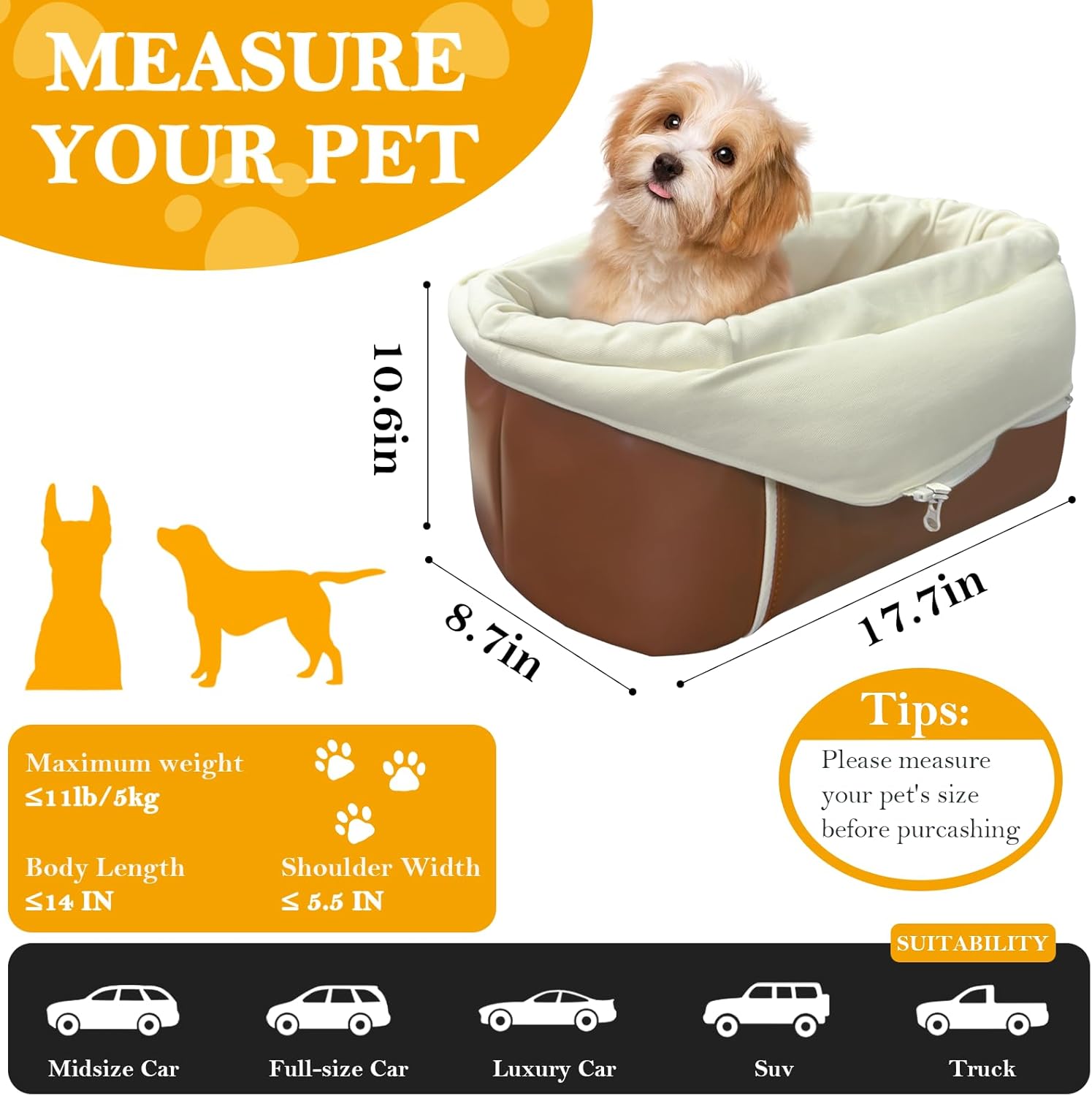 🧳 Dog Car Seat for Small Dogs Center Console Dog Car Booster Seat Washable Foldable Pet Seat with Safe Protection Hooks Adjustable Straps and Storage Pocket Pet Up to 11lbs (Brown, X-Small) — Dog Travel Gear Review & Current Price
