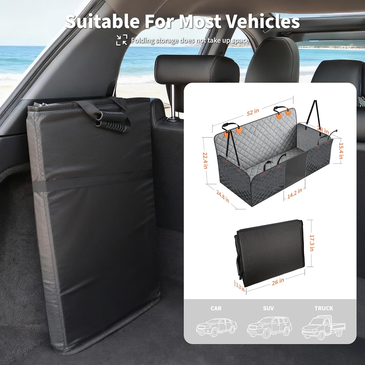 Universal Size and Storage Space: The backseat extender for dogs fits a wide variety of car models, including SUVs, and small trucks. There are also storage pockets provided, which are convenient for storing dogs’ toys, snacks, and other essential items for trips.