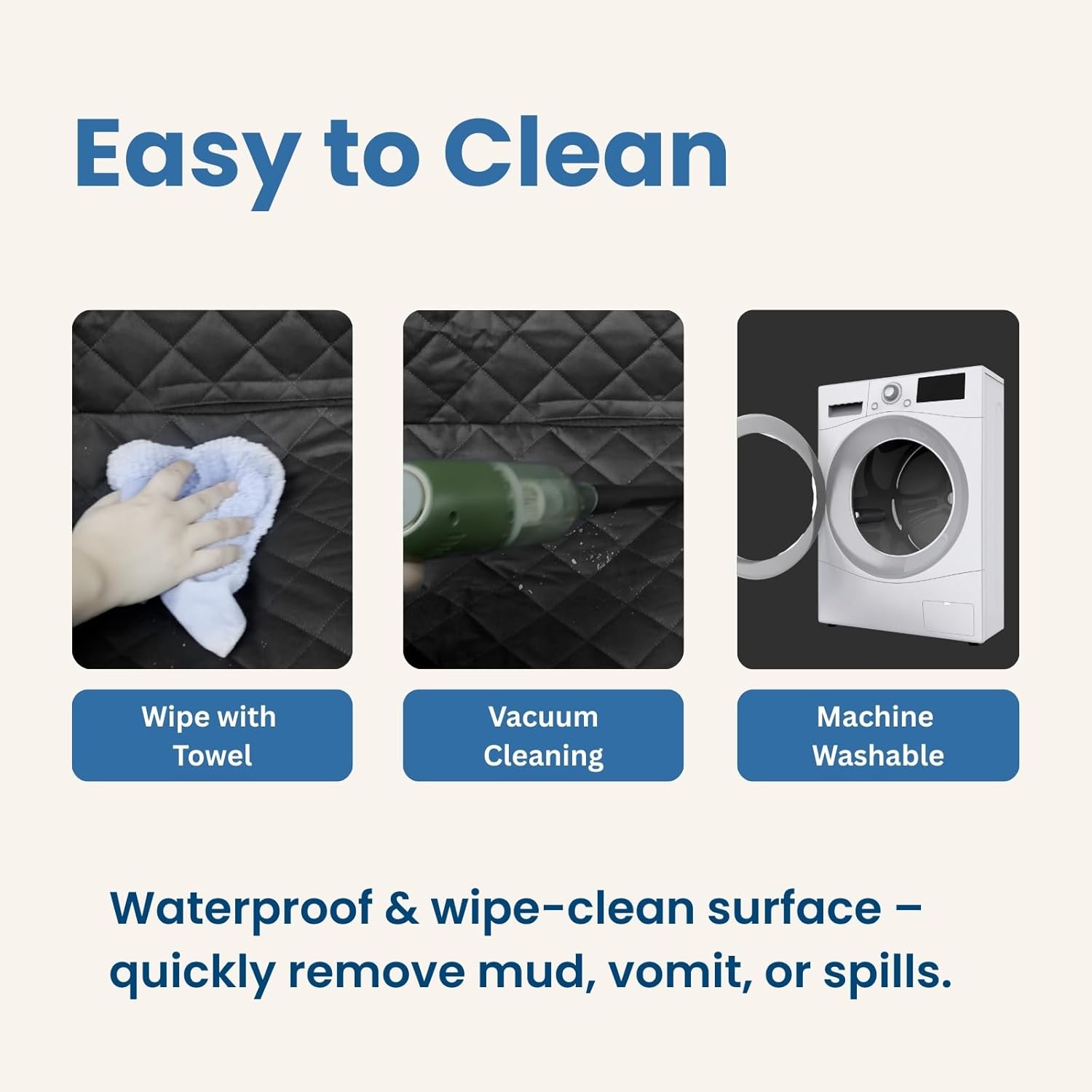 Waterproof & Dirt-Proof: The car seat protector for dogs features a Lotus-effect coating plus an inner PVC layer that blocks drool, mud, sand, and seawater, keeping your back seat spotless in any weather or trip