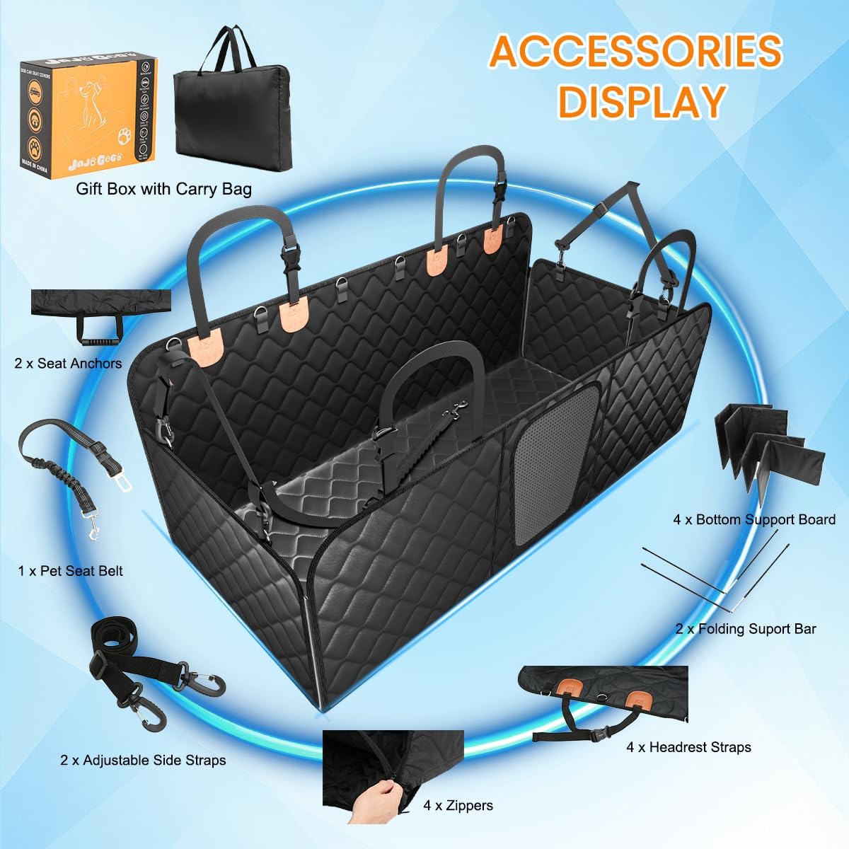 [Versatile D-Ring Attachment System] – This dog backseat cover innovative D-ring hooks replace traditional storage, letting you customize your setup with accessories like our specialized dog treat pouches (available at JOJOGOGO store). This smart upgrade makes it the most adaptable car seat cover for pet owners’ unique travel needs.