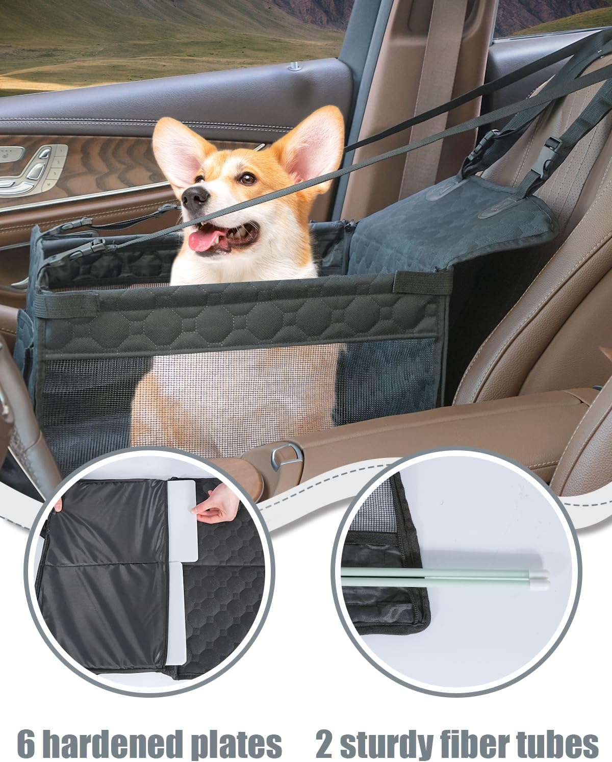 【More Secure to Prevent Dog From Falling】Four hardened plates have been added to the bottom and front of the dog car seat to make the dog seat more sturdy.It can prevent falling if you brake sharply while driving.And also a seat belt for dog is provided in case that your dog move around or fall off from the dog car seat large