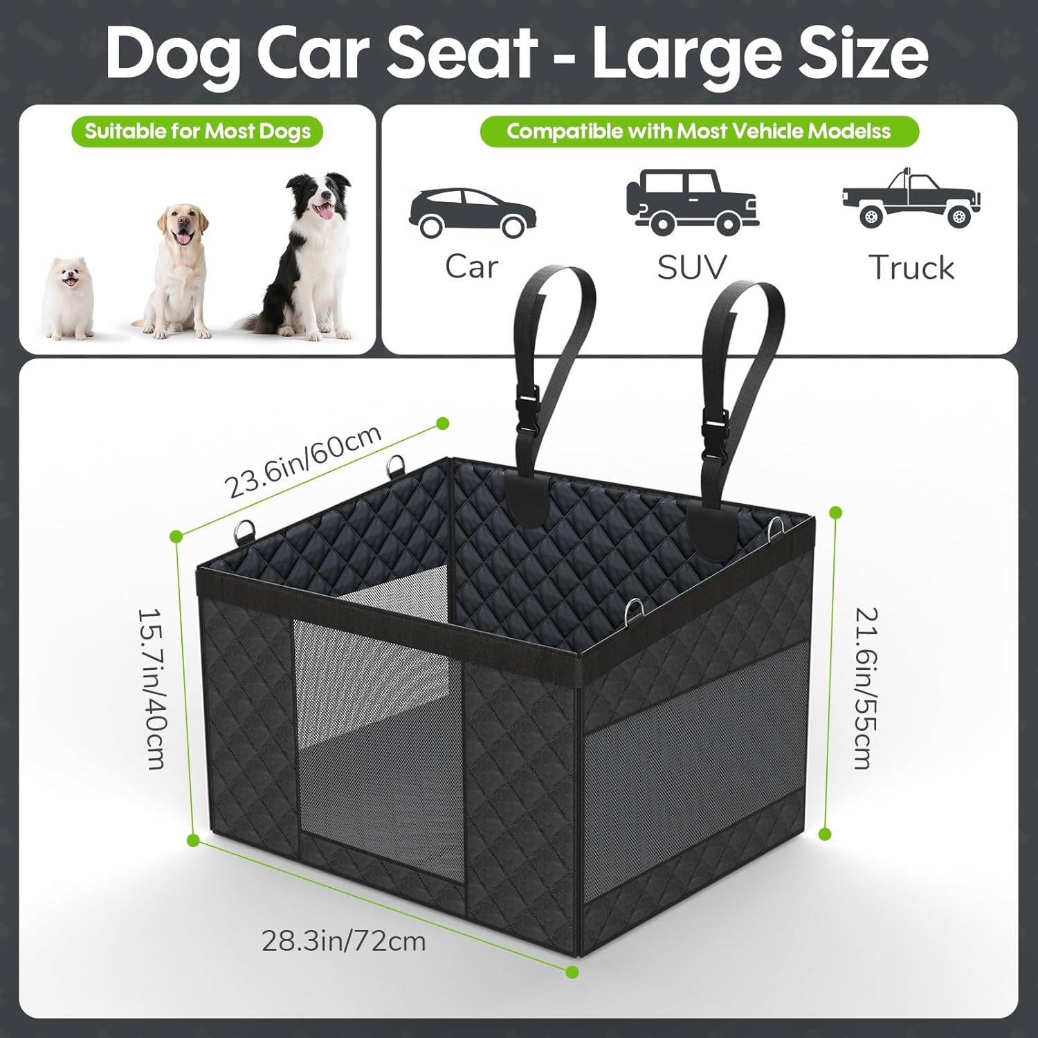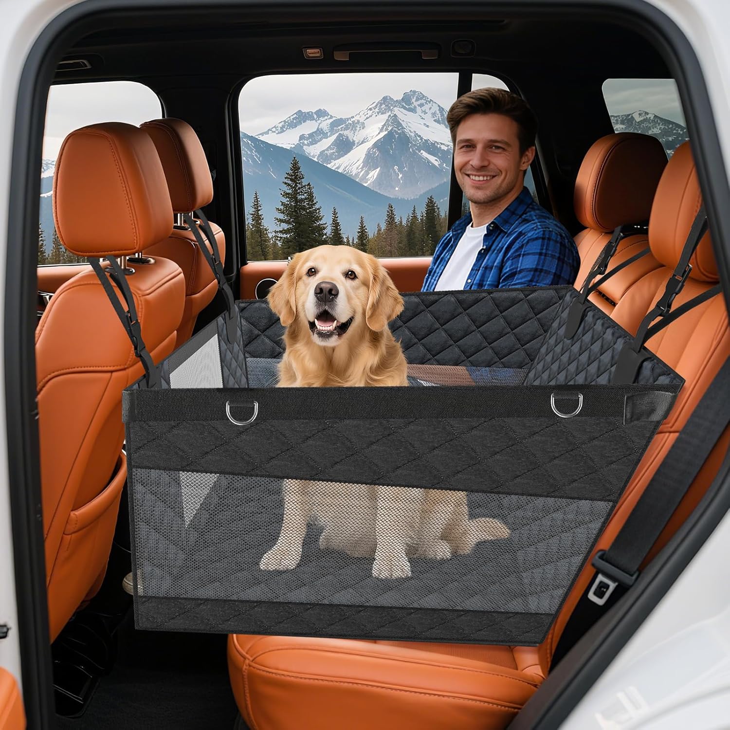 【All-round Protection of Dog Safety】Four hardened plates are added to the bottom of the dog car hammock and metal connectors are added all around to make sure the dog seat is more sturdy. If you brake sharply while driving, it can prevent your dog from falling and protect your dog’s safety. In addition, we also provide a safety belt in case your dog walks around or falls off the big dog car seat.