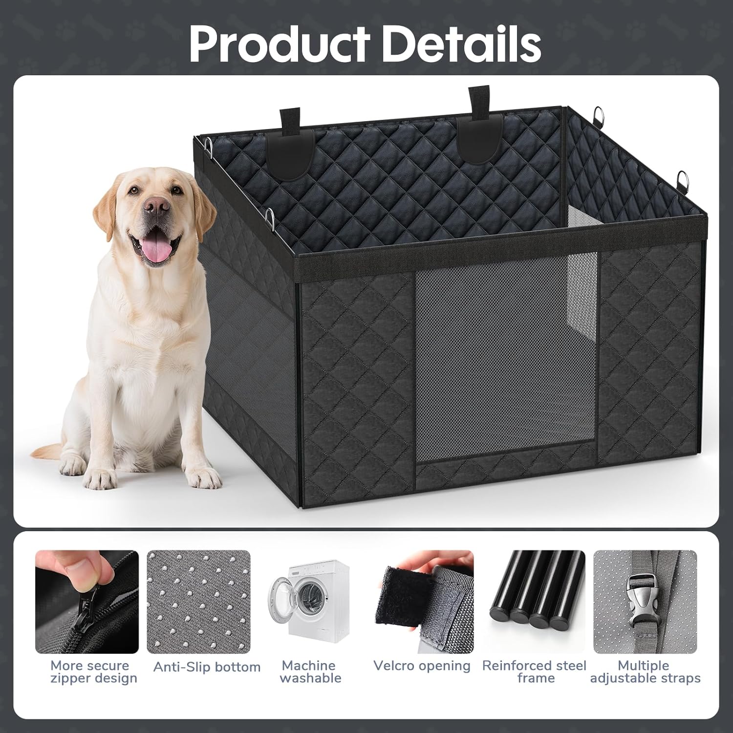 【High-quality Durable Materials】The dog car seat for back seat is made of high quality PU fabric, which can effectively waterproof, abrasion and slip resistant, with excellent durability and wear-resistant, easy to clean. The bottom backing is made of non-slip design, which ensures the stability of the dog car seat and is not easy to move.