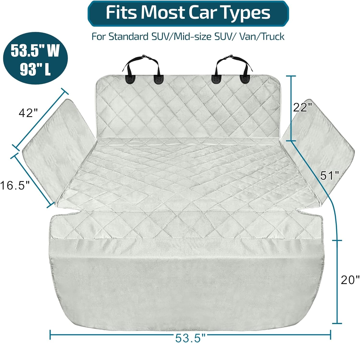 SUV Dog Cargo Liner Protection Work as a SUV dog cargo liner to protect your car from pet scratches, dander, hair, spills, odors, mud and water;Even put down the second or third row seat, it is long enough for the bumper flap.