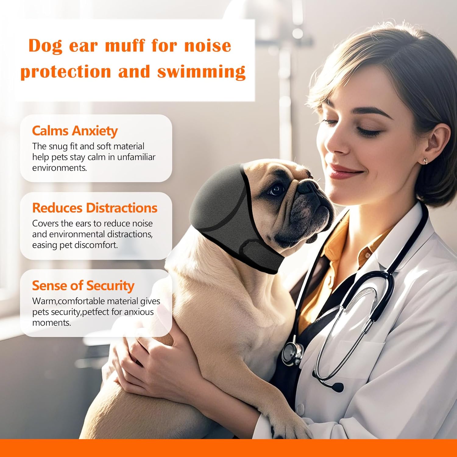 Easy to Use for Many Occasions: Be used as dog ear plug for bathing, dog swimming ear protection, dog ear cover for noise protection, dog ear covers for blow drying, and also can be used as dog calming hood and dog headband for grooming. Besides, during the winter it can also keep the dog`s ear warm.