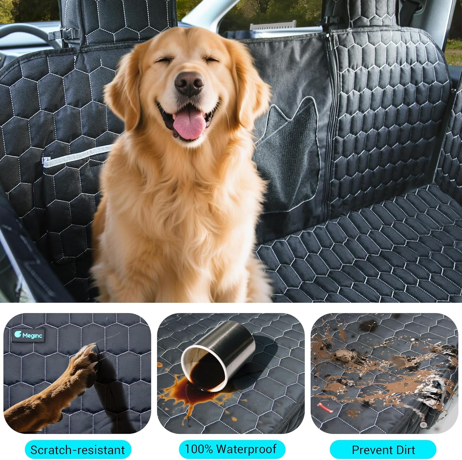【PVC Mesh Window & Storage Bag】The dog seat covers for cars scratch-resistant PVC mesh is dog-head design, which provides better air circulation for your dog.