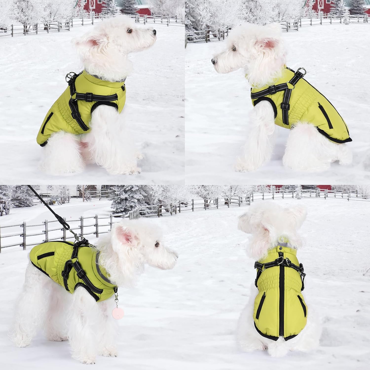 Easy To Wear- dog coat with zip on the back and harness built in.The protective guard on the dog jacket prevents dog fur and skin from getting accidentally zipped. dog coats adjustable elastic straps of the abdomen make this jacket fit your dogs well.