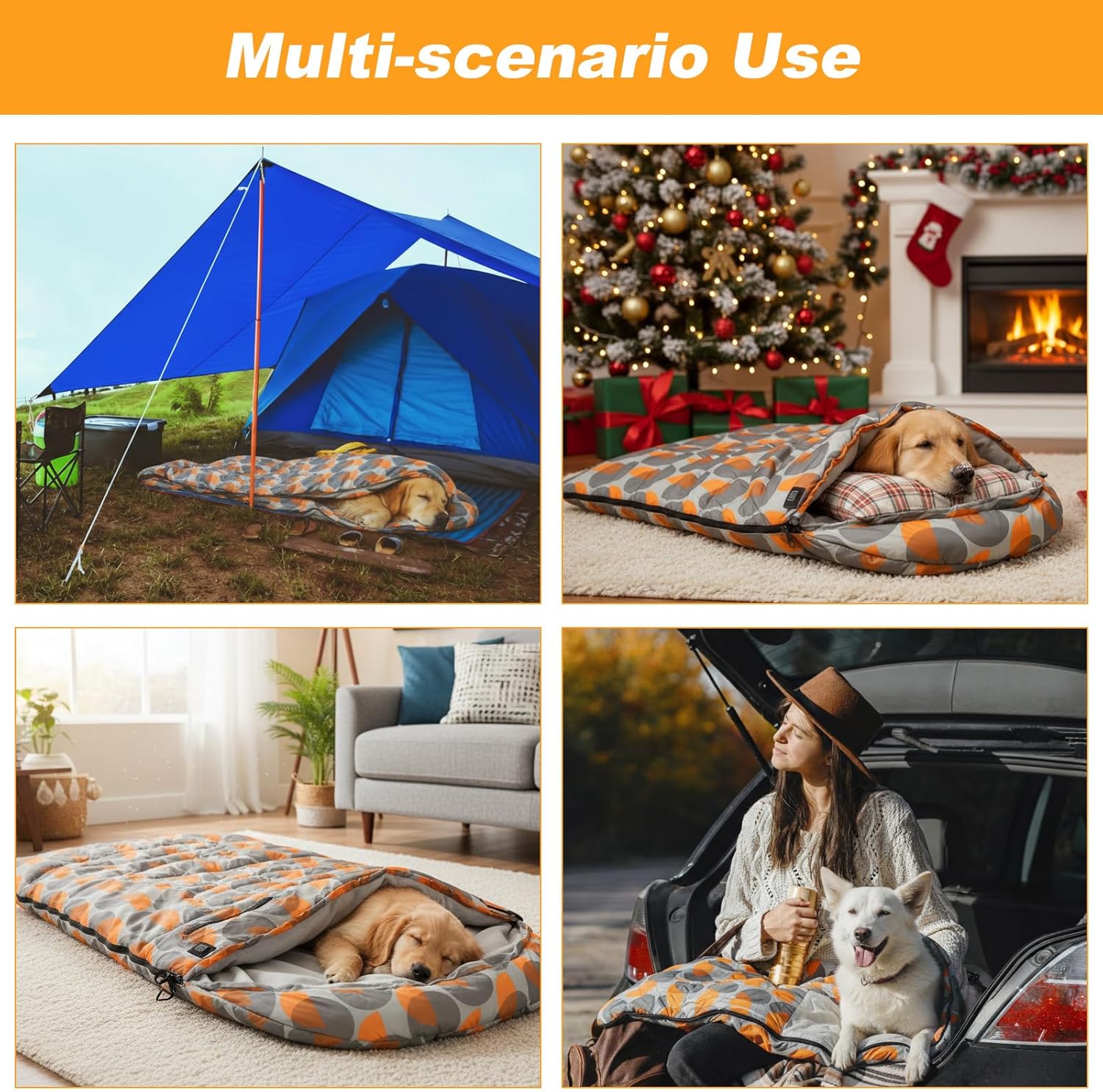 Versatile Use: the dog camping tent is a pet bed at home, in the backyard, or as a portable mat for crates, but also serves as a pet sleeping bag for travel, hiking, camping, backpacking, hunting and outdoor activities