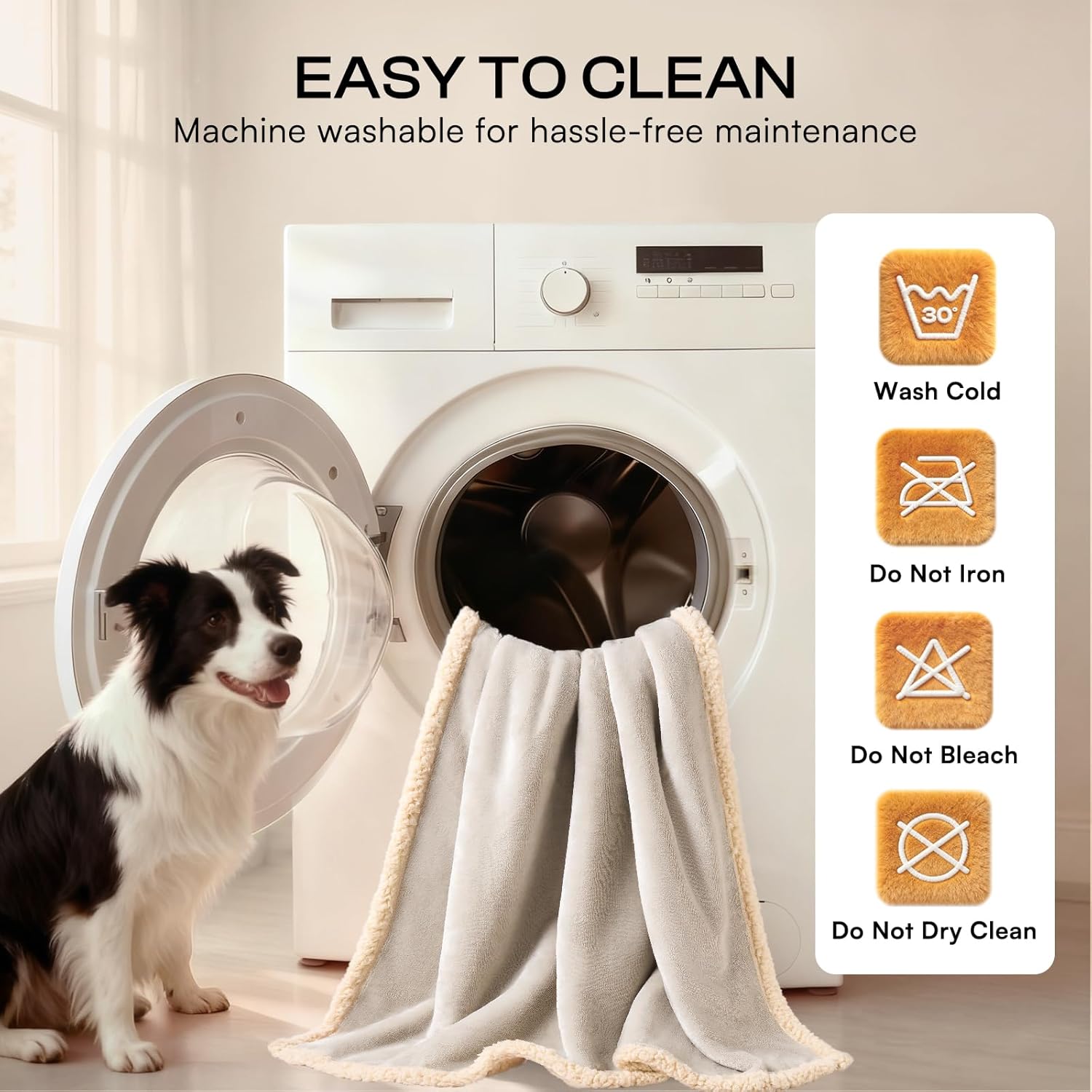 Triple-Layer Waterproof Protection – Soft fleece surface + waterproof inner lining + warm Sherpa backing create a strong barrier against urine, drool, and spills, keeping your couch, bed, or car seat clean and dry.