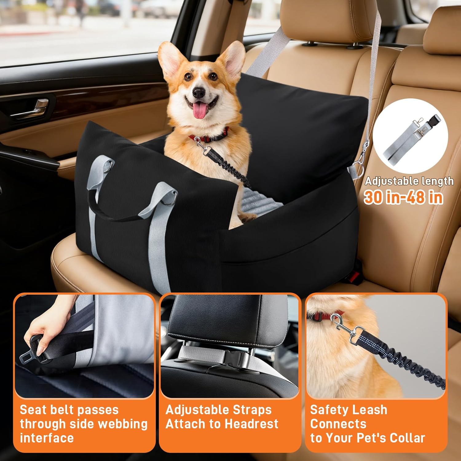 【Superior Comfort】Dog Booster Car Seat with high-density memory foam, it provides exceptional support, minimizing road bumps and vibrations. Thickly padded side walls with shredded foam and polyester mold comfortably around your pet’s neck for a cozy journey. Convenient side pockets keep toys and treats within reach.