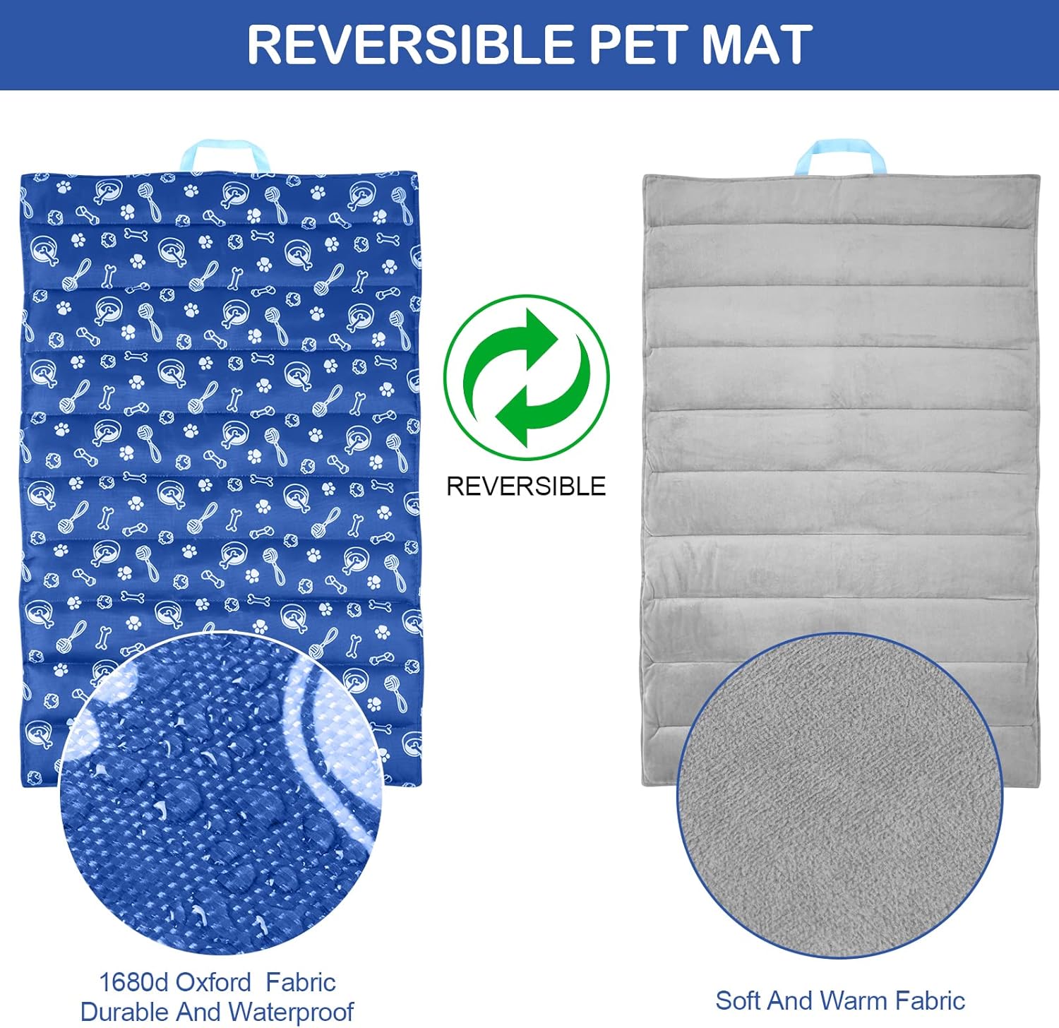TWO SIZED MATERIAL: The outdoor dog bed is available on both sides, with one side made up of 1680D Oxford cloth that is suitable for hot season like summer. This side also features water resistance, making it easy to wipe away any water or raindrops that may come into contact with the dog bed. The other side is composed of single-sided flannel material that is soft and warm enough for cold season like winter.