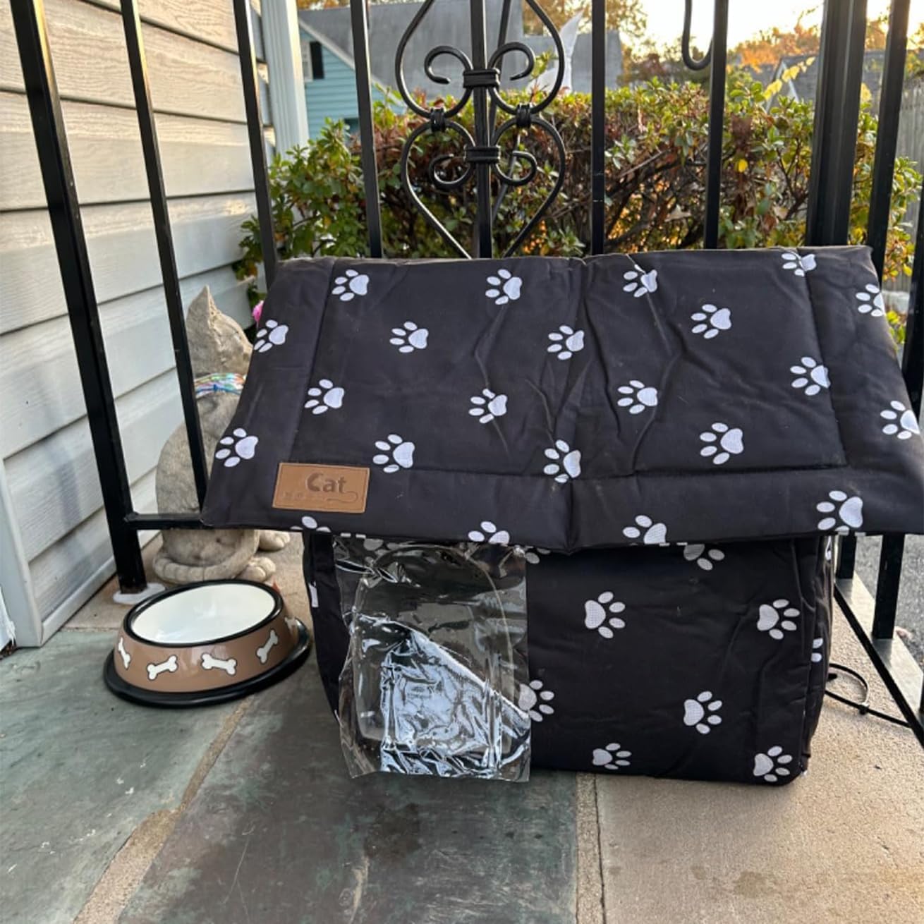 Waterproof and Strong:Cat four season shelter outer fabric is sturdy, durable, and waterproof Oxford material, which is weather resistant and insulated. Stray cats shelter,It will keep the interior of the outdoor cat shed dry and comfortable.It is easy to place in the place you want, can be fixed outdoors, not afraid of being blown down