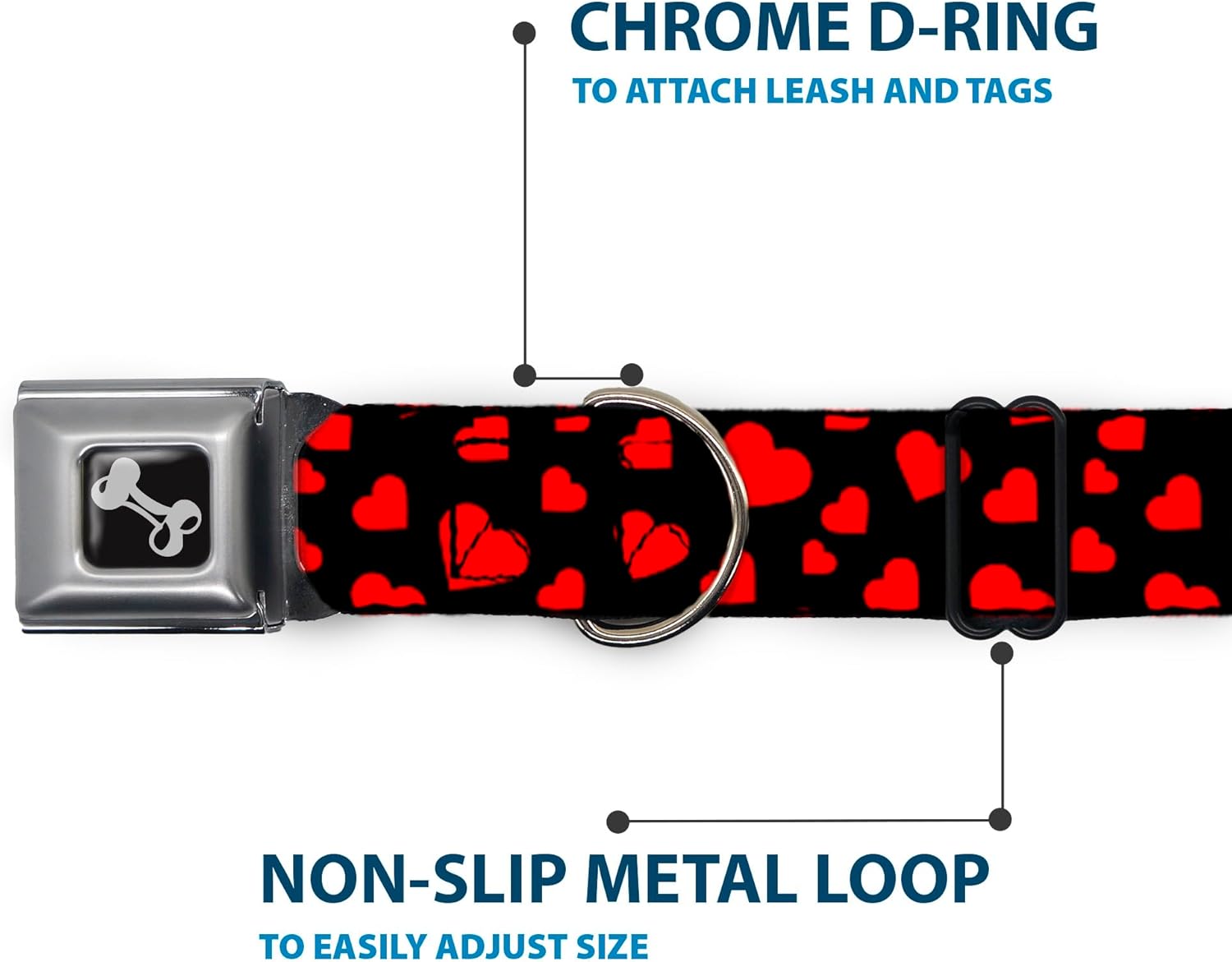 Wide Large Heart-Patterned Black/Red Dog Collar by Buckle-Down