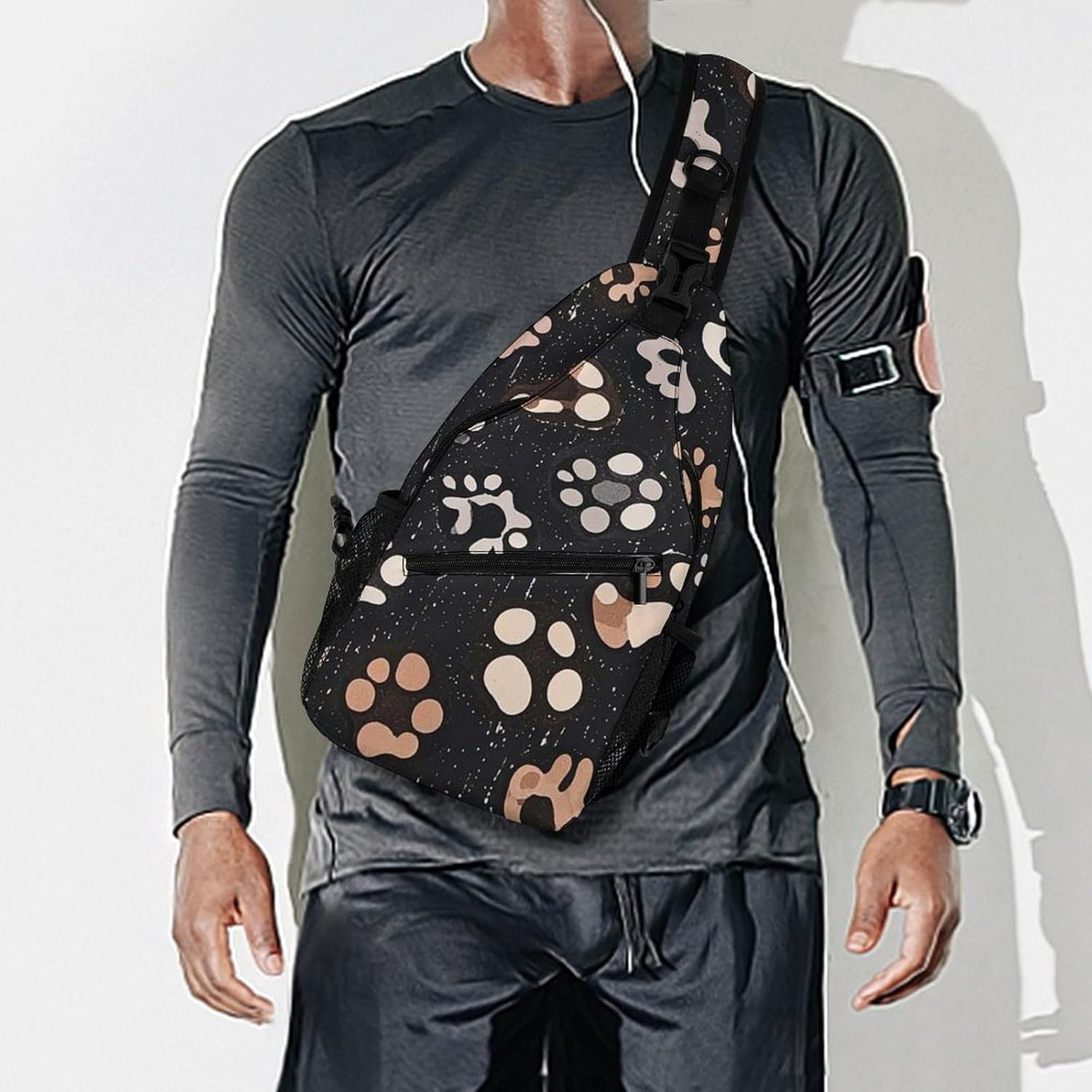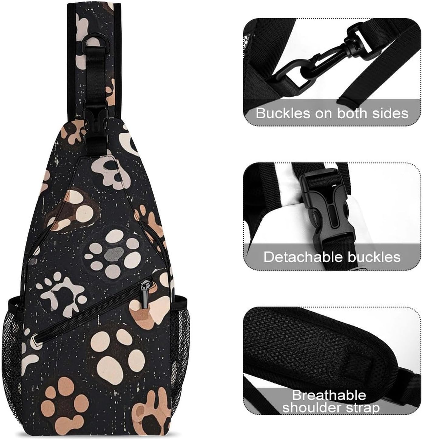 Our Dog And Cat Pups Animal Paw Prints diagonal chest bag is exquisitely designed and made of high-quality polyester. The material is thick and durable, with a very soft feel. The padded shoulder straps and back are made of breathable fabric, so you won’t feel stuffy even if you wear it in summer or for a long time.