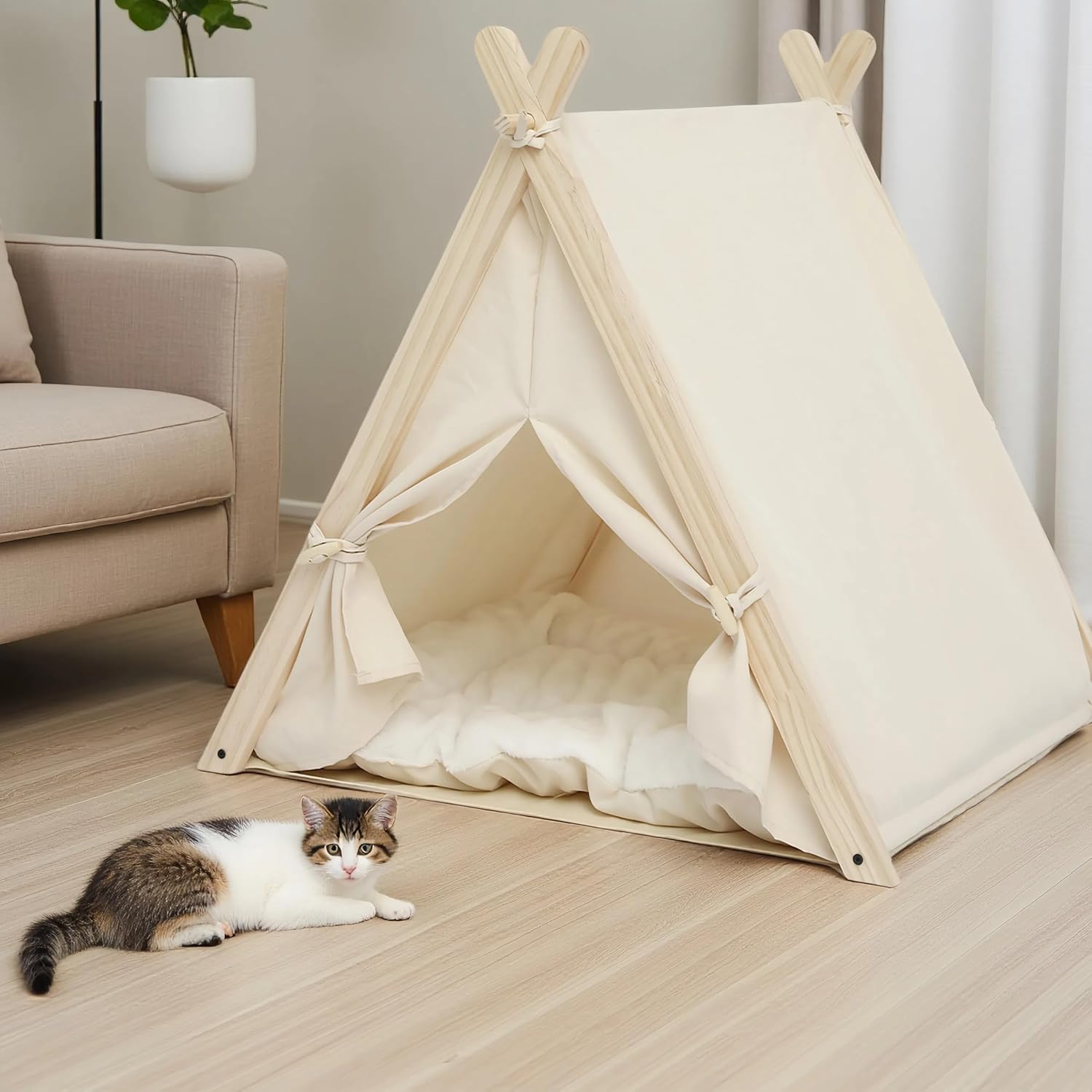 Stylish Indoor Dog House & Cat Retreat: The XiMaiChy Pet Teepee offers a cozy dog teepee indoor sanctuary or cat teepee hideaway. This charming dog house indoor seamlessly blends with home décor, providing small dogs and cats a secure, inviting dog tent bed to call their own