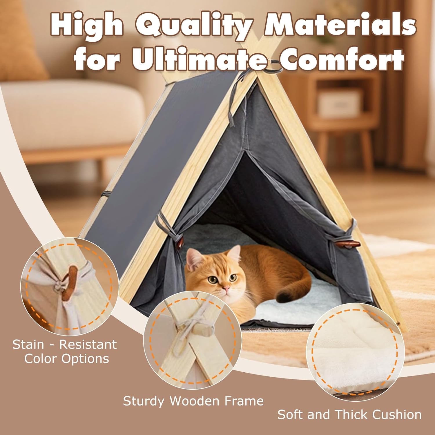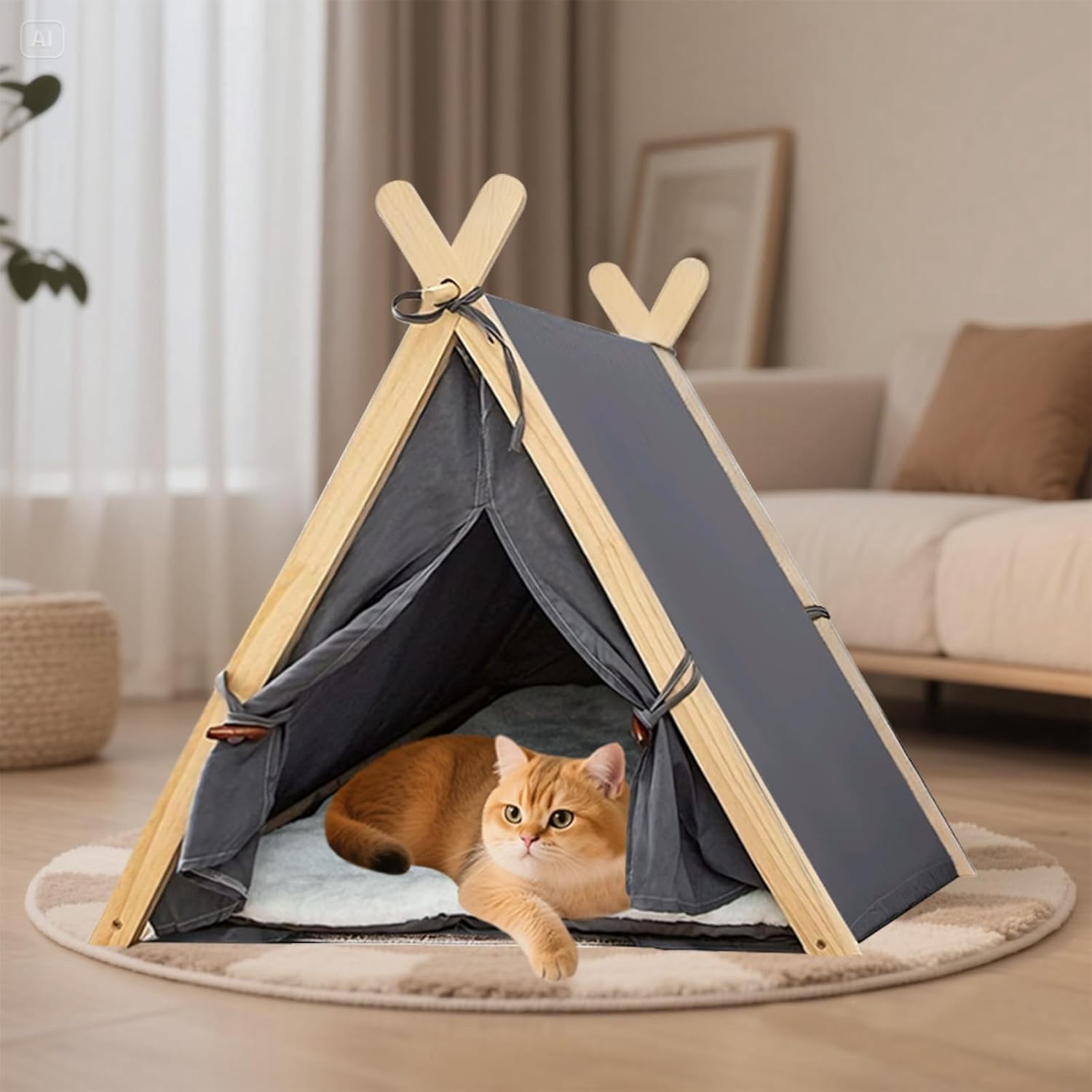 Wood and Cloth: Made from premium wood and cloth materials, our cat tent guarantees the comfort and durability that your pets need, all while being safe and environmentally friendly.