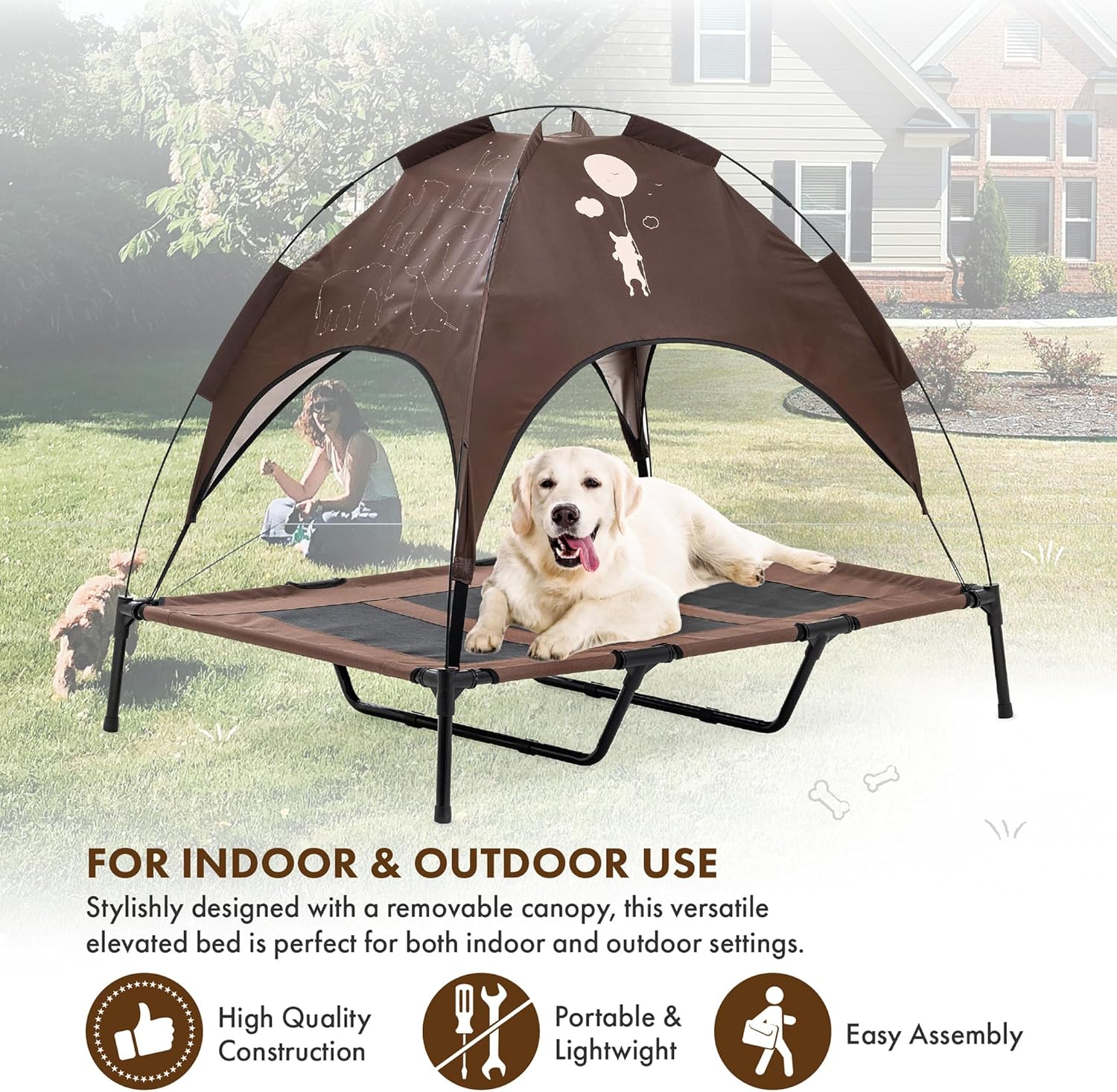 Indoor & Outdoor Ready – Whether it’s a cozy nap indoors or outdoor shade under the sun, this versatile bed fits every lifestyle. Remove the canopy for indoor use or keep it on for outside adventures—making it the perfect year-round spot for pets to rest and recharge.