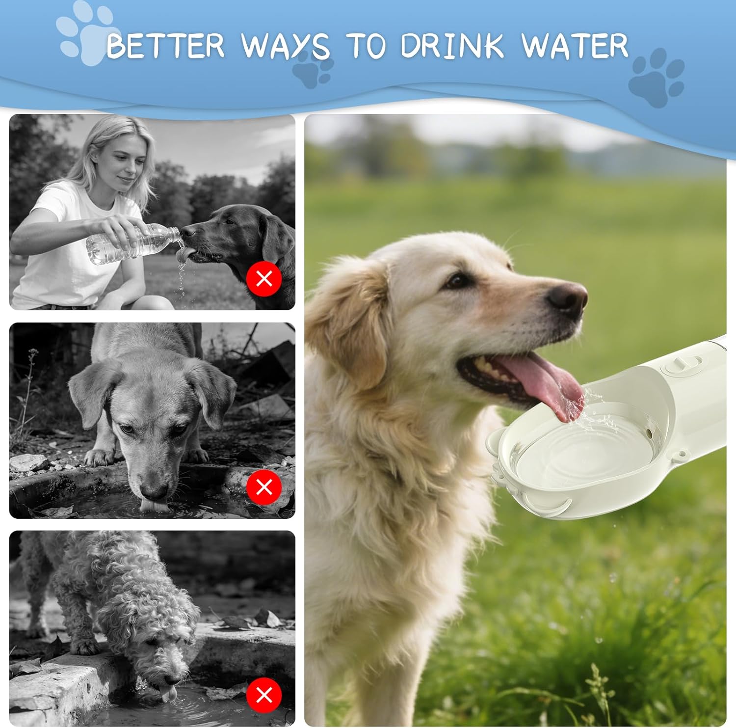 [Hydration & Feeding on the Go] Simplify your outdoor adventures with this 2-in-1 dog water bottle. The integrated food container allows you to carry kibble and water in one stylish unit. No need to pack separate bowls—keep your pup energized and hydrated during long dog walking sessions or road trips.