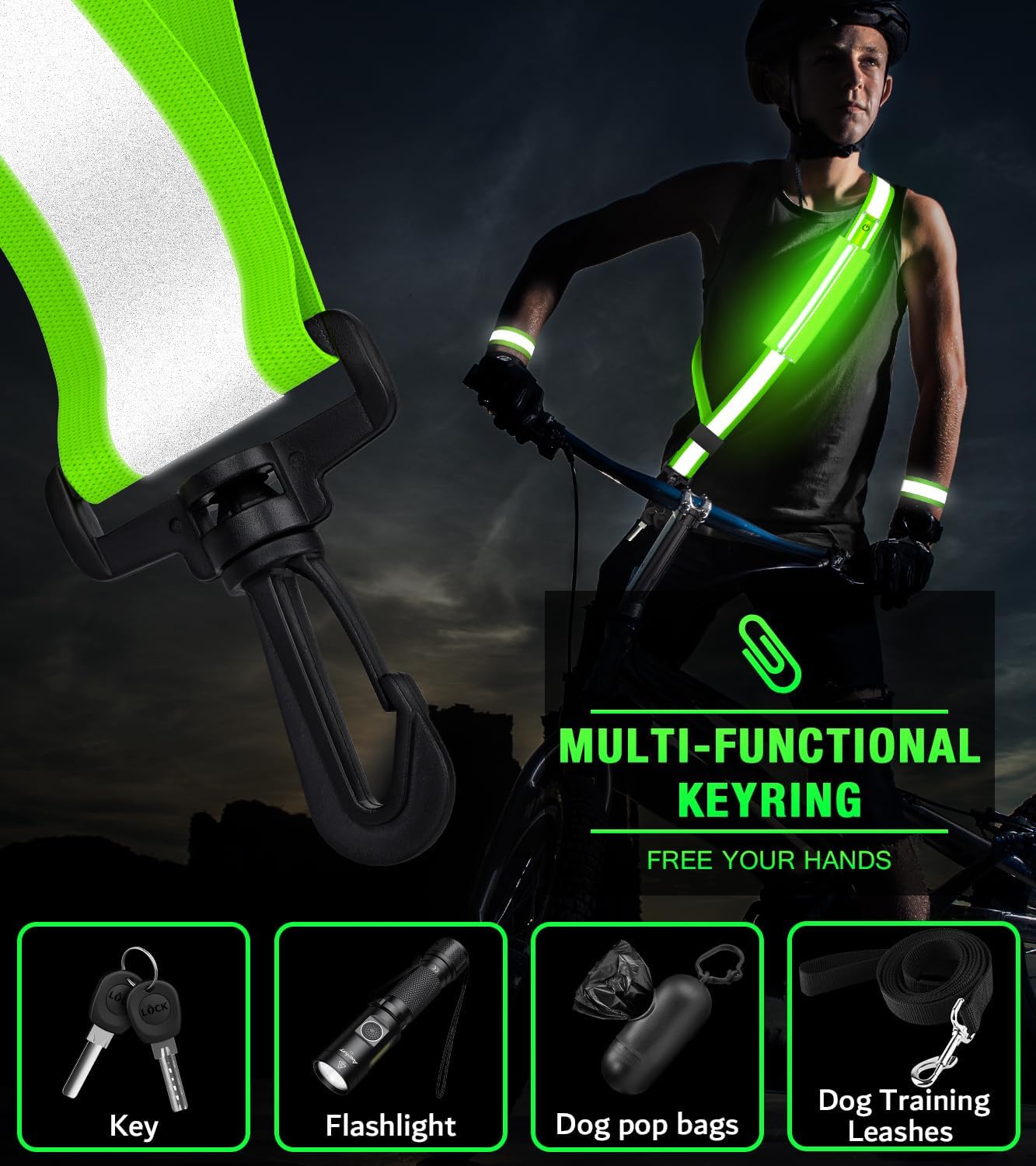 💡【Brighter and Safer】This innovative LED reflective running gear set equipped with front and rear LED lights attached to the reflective waistband for brighter lighting. It is additionally equipped with 2 reflective armbands to achieve 360-degree ultra-high visibility. keep you safe during day or night outdoor activities.